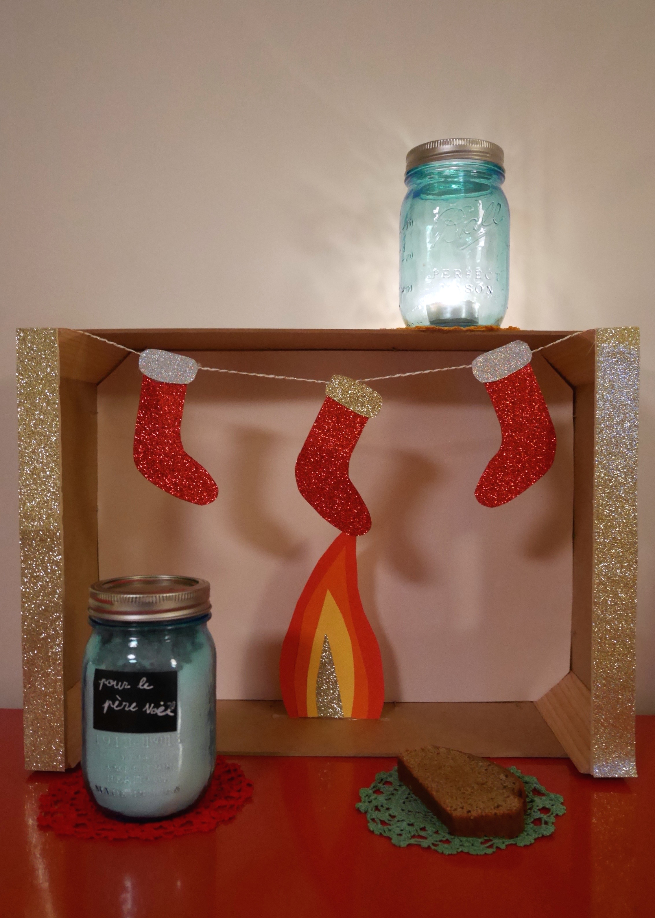 4/ Disposez les napperons, les mason jars, la part de pain d’épices à côté de la cheminée…et laissez la magie de Noël opérer!