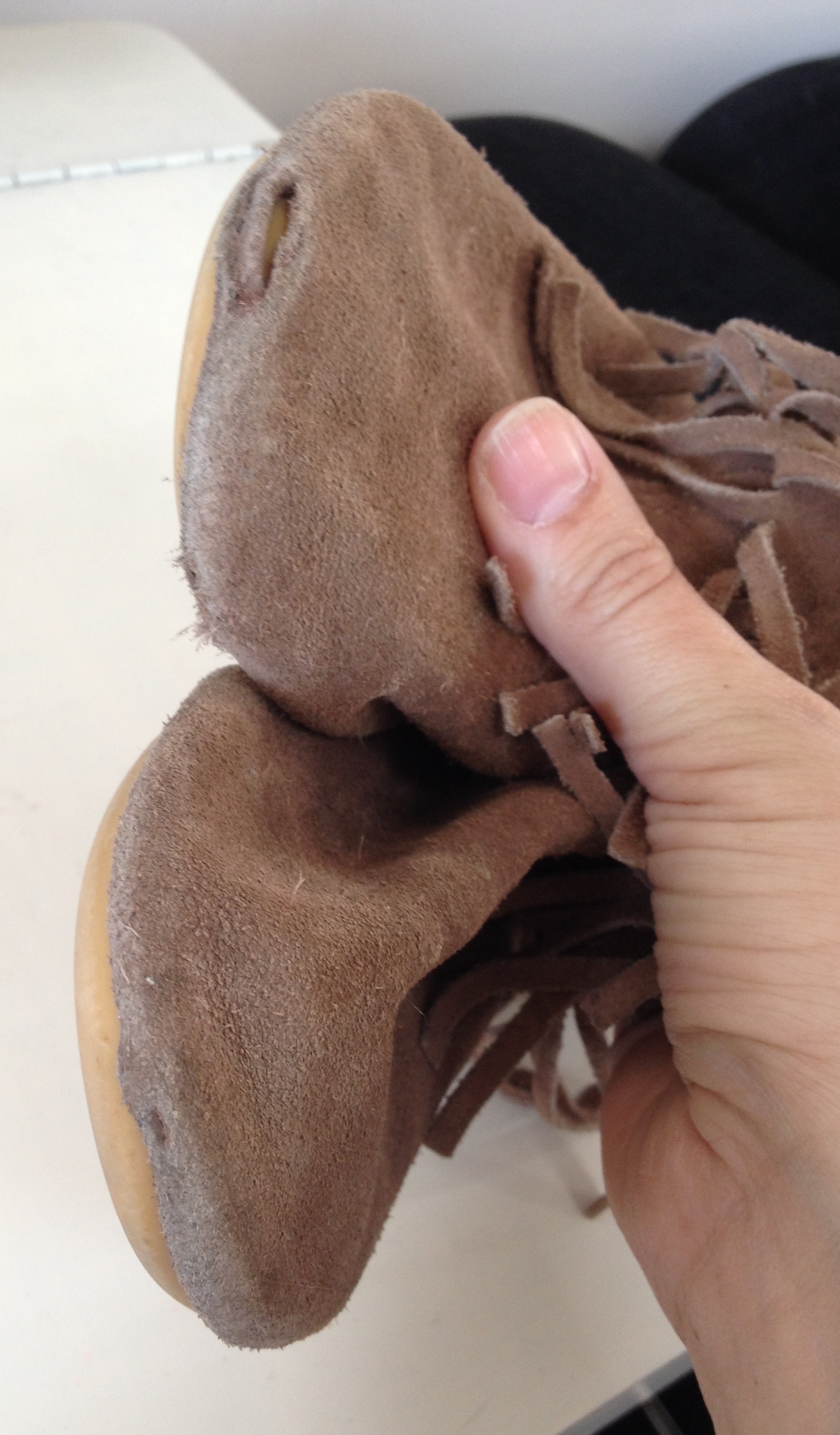 Objet du délit : de jolies petites boots achetées (certes pas très chères!) il y a peu de temps dans une braderie, à peine portées par Louise (6 ou 7 fois maximum) et qui sont déjà trouées.