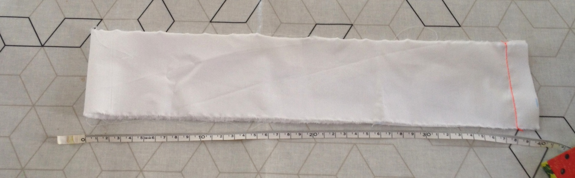 Pliez la bande de tissu sur la longueur, endroit contre endroit (vous obtenez alors une bande de 40 cm x 8 cm) et cousez.