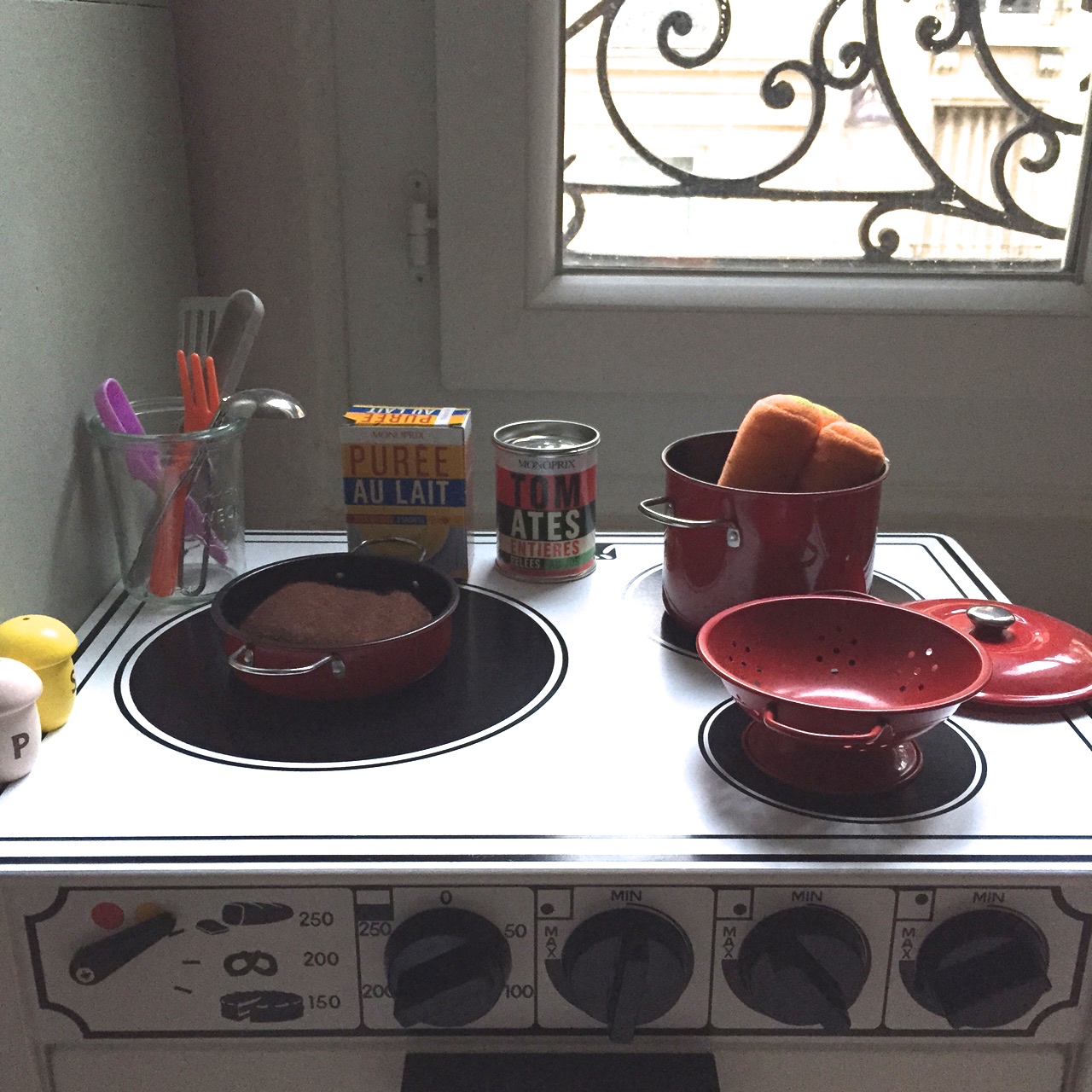 Et je l’avoue, je me suis amusée moi aussi à mettre en place la boîte de conserve là, le pot de Nutella ici…mais chut, ne leur dites pas!
