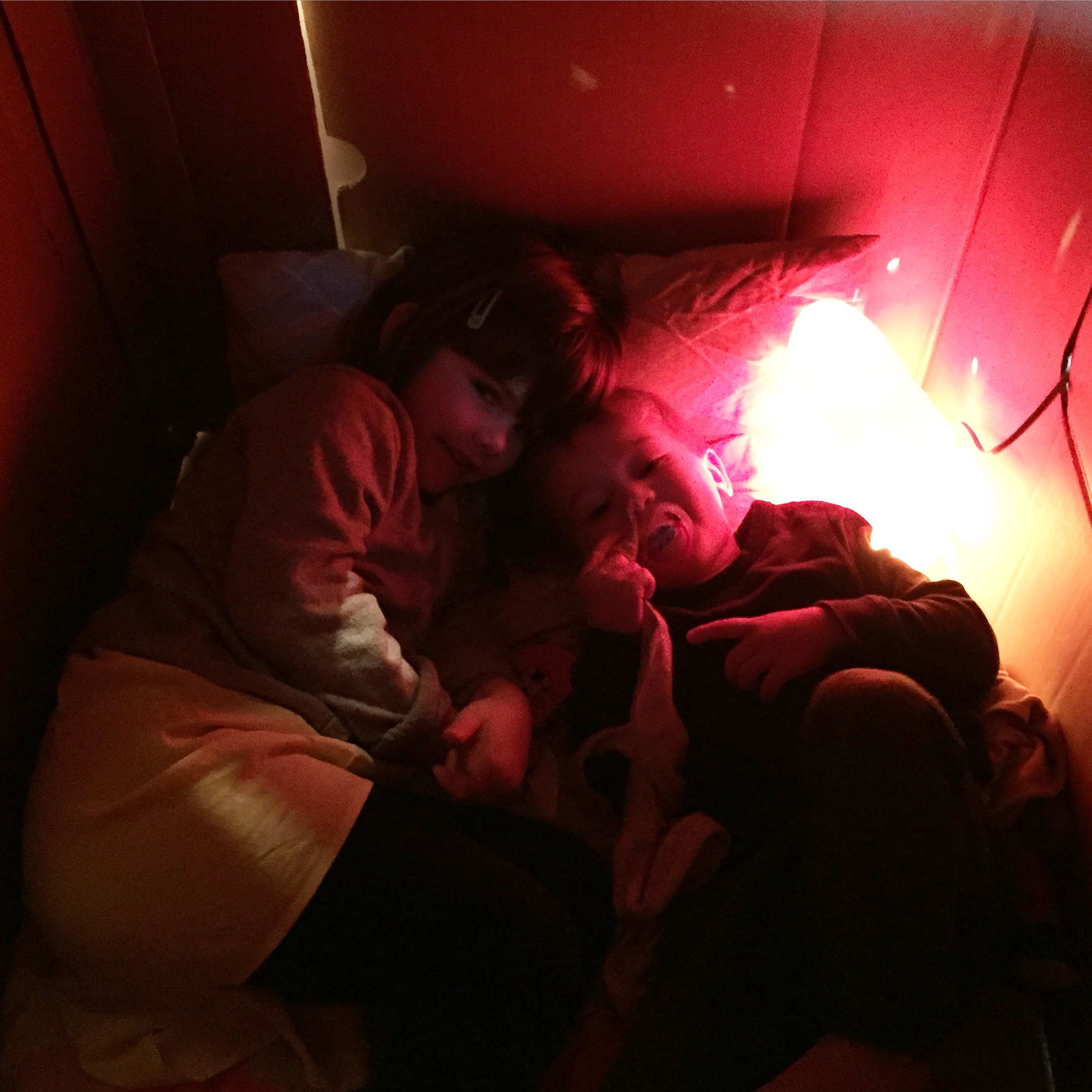 Et puis on a aussi ressorti la cabane en carton offerte pour les 2 ans de Louise. Les enfants ont passé beaucoup de temps dedans. Dommage que leur chambre ne soit pas assez grande pour la laisser en permanence.