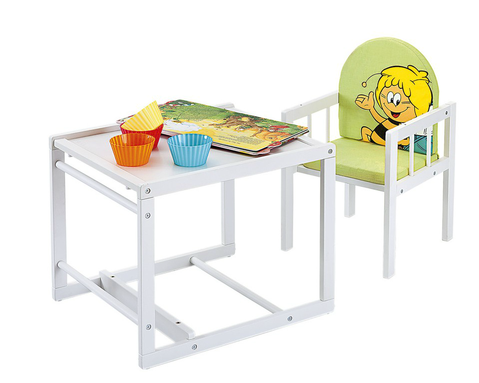 7. La chaise haute qui se transforme en combiné table et chaise! Je n’avais jamais vu ça et je trouve ça idéal comme achat pour les grands parents qui sont parfois un peu réticents à investir dans du matériel qui ne servira pas longtemps.