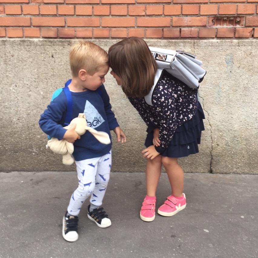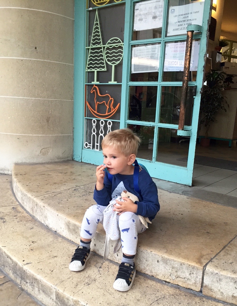 Et puis avant d’emmener Lucien dont la rentrée était à 10h20, nous avions prévu d’aller boire un café. Sauf que mon blondinet n’a pas du tout eu envie d’attendre. On est passé devant son école, il pleurait. Alors finalement on a eu l’autorisation de rentrer avant l’heure (sachant qu’une vague d’enfants était déjà rentrée).