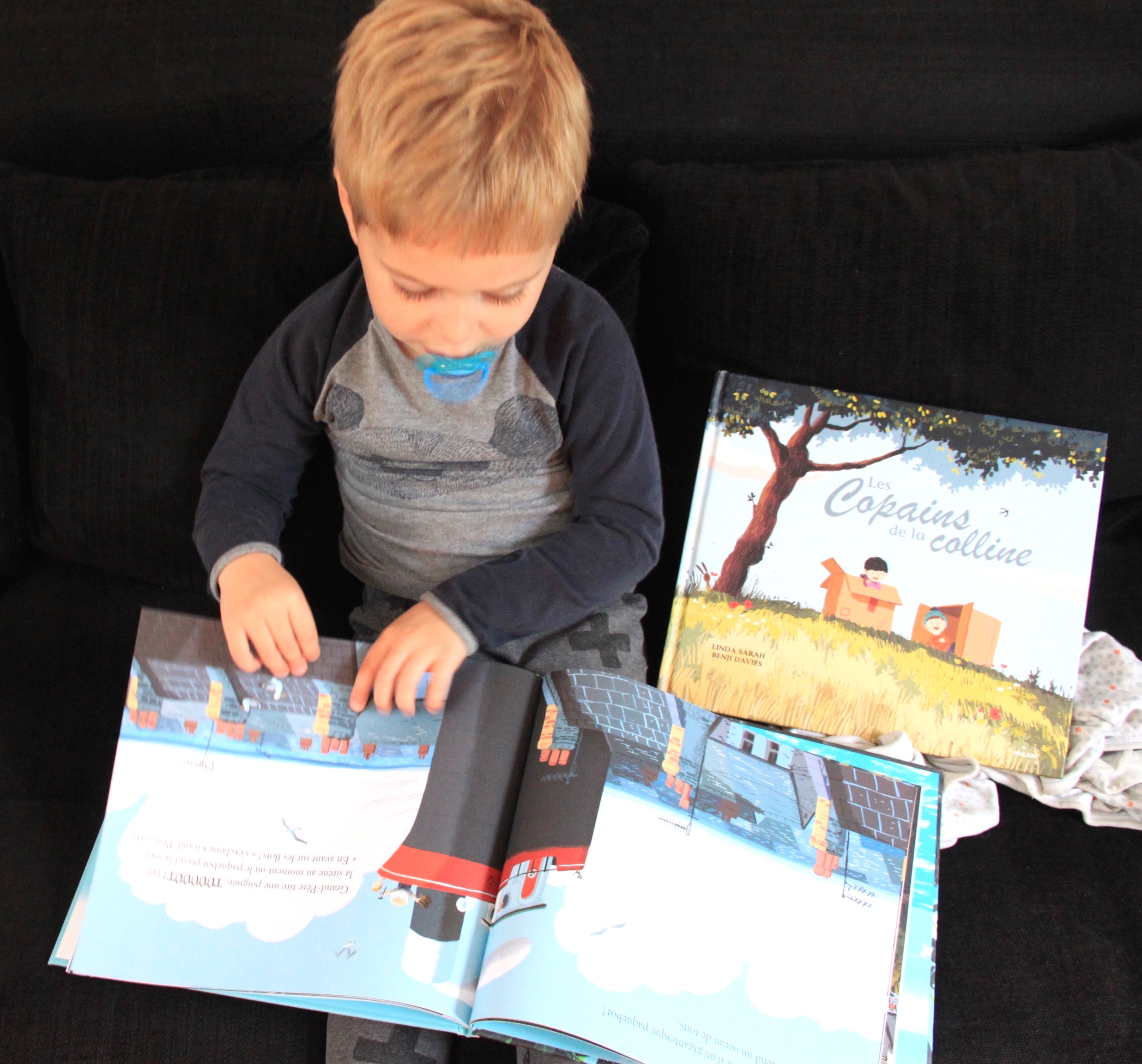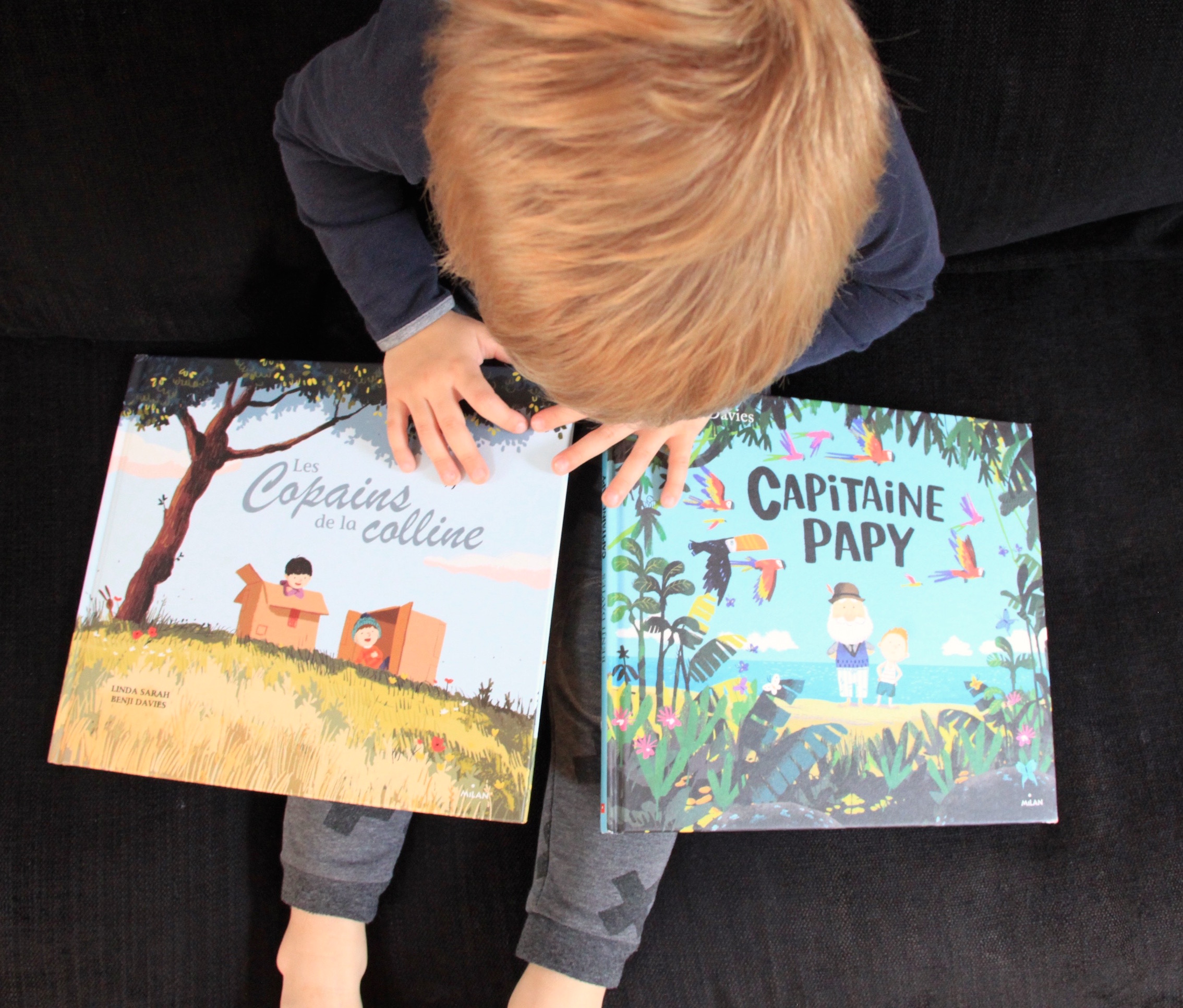 Enfin voilà, on a tous tellement aimé Capitaine Papy que l’on a acheté un autre livre illustré par Benji Davies (les textes sont quant à eux de Linda Sarah). Il s’appelle Les copains de la colline et raconte une histoire d’amitié entre 2…puis 3 petits garçons. Une fois encore, c’est juste et touchant. On sourit, on est ému et puis on sourit encore et encore.