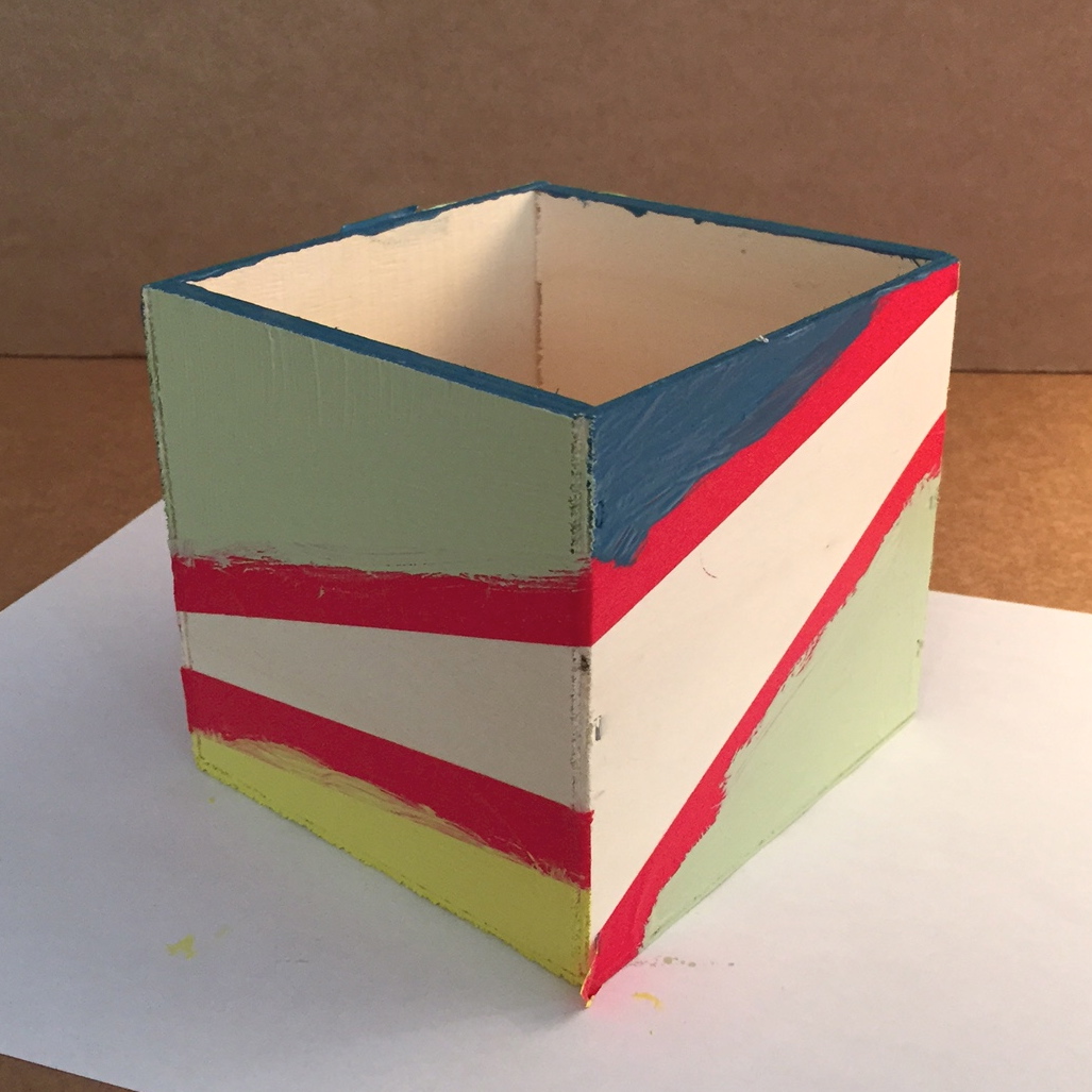1. Positionner le masking tape sur la boîte en fonction du style que vous avez envie de lui donner (asymétrique, rayée, etc) et peindre.