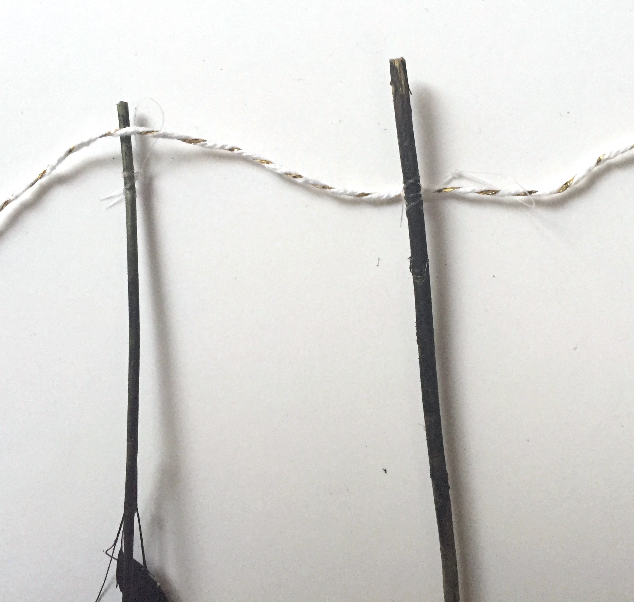 4/ Fixez votre guirlande au mur avec un peu de making tape. N’oubliez pas de faire un petit noeud aux 2 extrémités de la ficelle pour éviter qu’elle ne glisse.