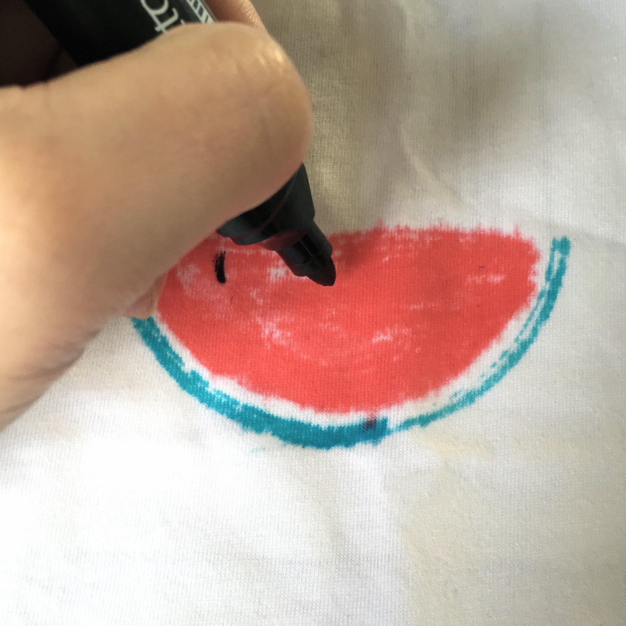 4. Laissez sécher puis dessinez les pépins avec un feutre noir indélébile.