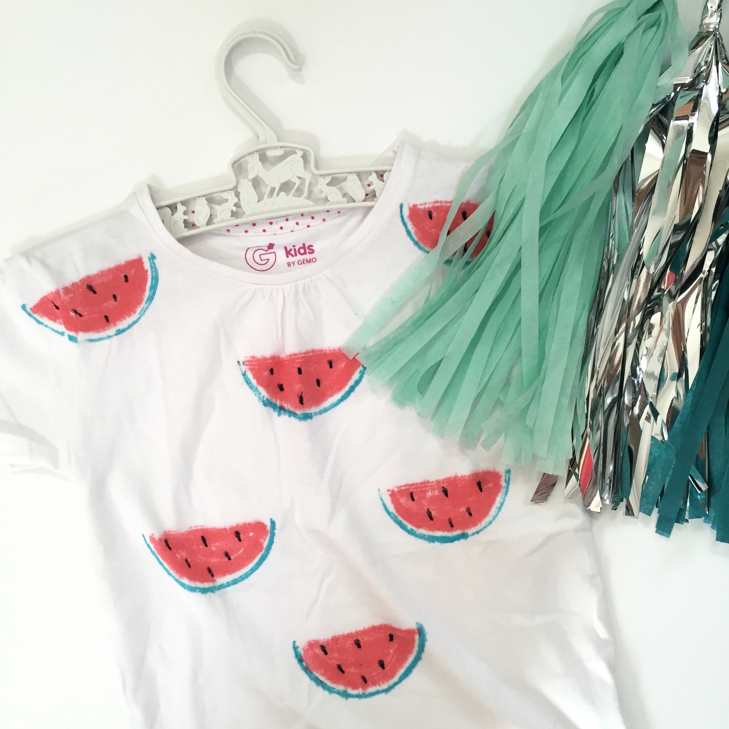 L’année dernière j’avais fait en sorte d’assortir mes « créations » à un short ananas. Cette année, je suis restée dans le thème des fruits et je ne suis pas allée chercher bien loin pour trouver l’inspiration puisque j’ai opté pour la pastèque que l’on voit partouuuuut.