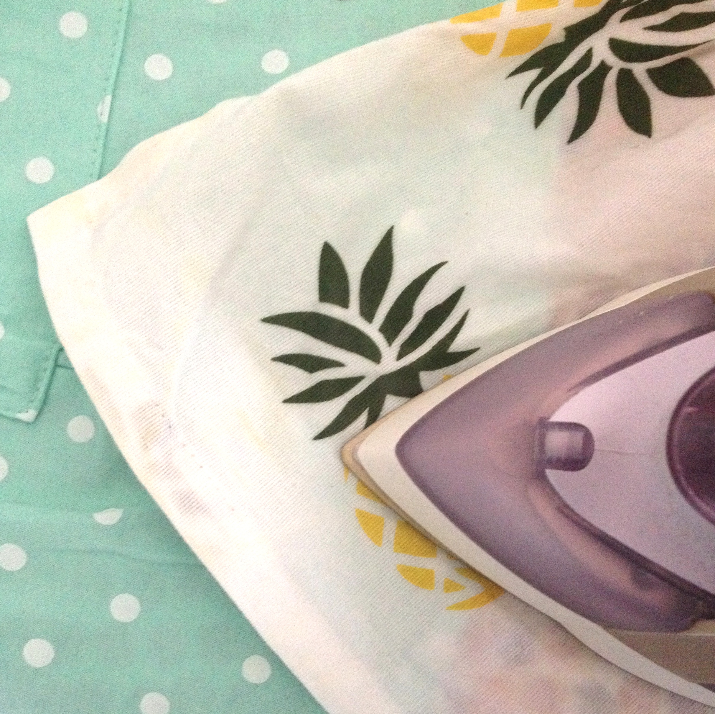 – Fixer les pastilles à l’aide d’un fer à repasser chaud (mais sans vapeur) et une pattemouille (un torchon mouillé). Ca prend un peu de temps donc faire en sorte de ne pas avoir ses enfants dans les pattes!