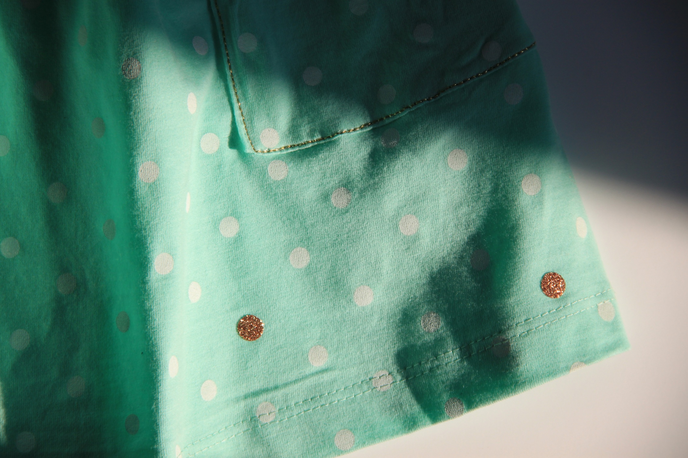 C’est l’histoire de la jupe pastel à pois achetée chez Zalando. Jolie, à la mode mais voilà, je trouvais qu’il lui manquait un petit quelque chose! J’ai donc eu envie de lui rajouter des petites touches dorées.