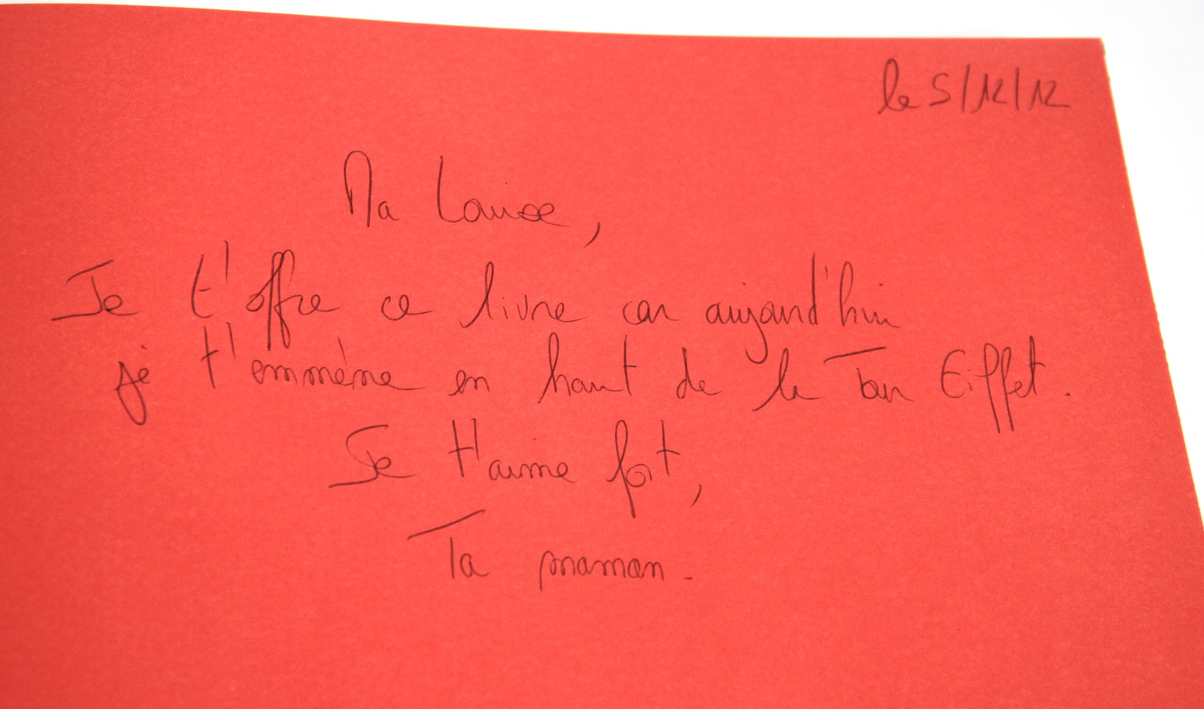 Ce livre, je l’aime encore plus que les autres car je l’ai offert à Louise le jour où je lui ai fait la surprise de l’emmener voir la Tour Eiffel.