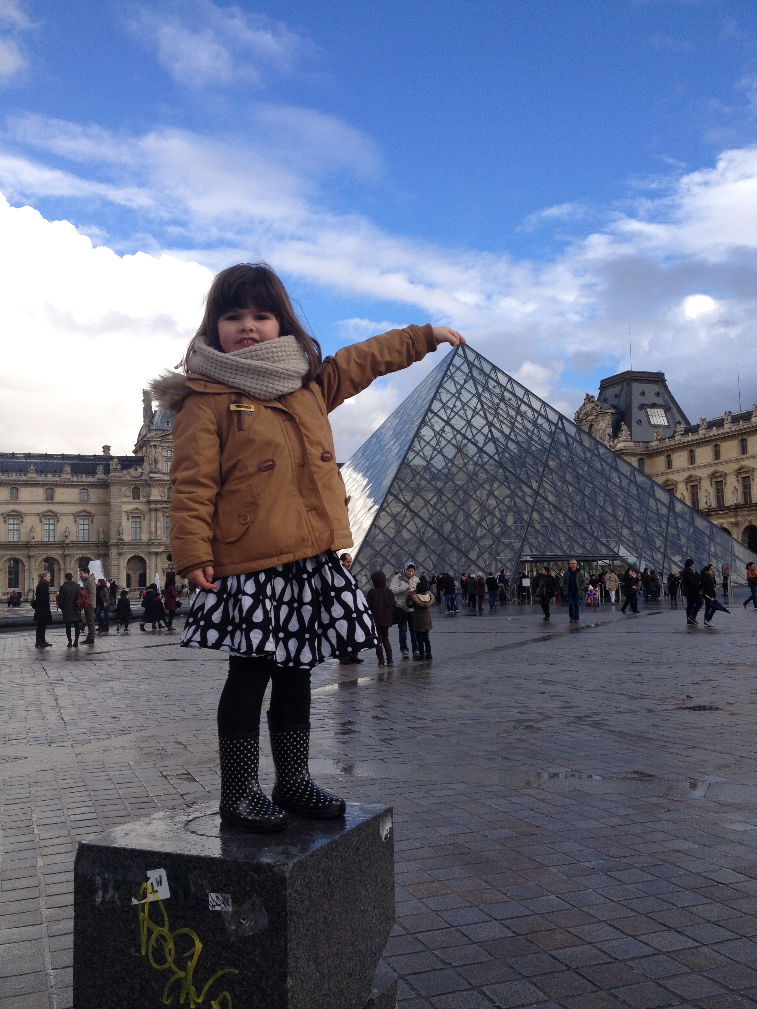 Extra tes photos ! Il est vrai que nous avons une chance extraordinaire de vivre a Paris. Louisa a l’air vraiment ravi de son escapade avec toi. J’adore la jupe (ou la robe) de Louise et ses bottes à pois.