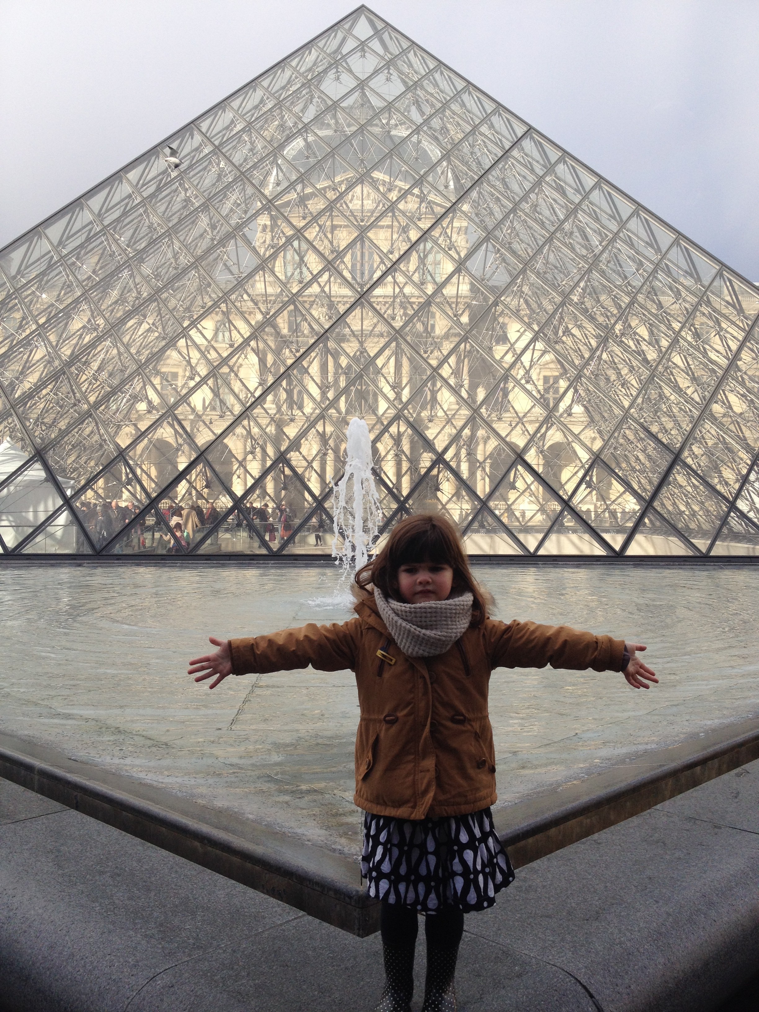 c’est bien tombé finalement, vous avez l’air d’avoir passé un chouette moment, l’arc en ciel est fantastique, et la photo de Louise devant le Louvre parfaite ^^