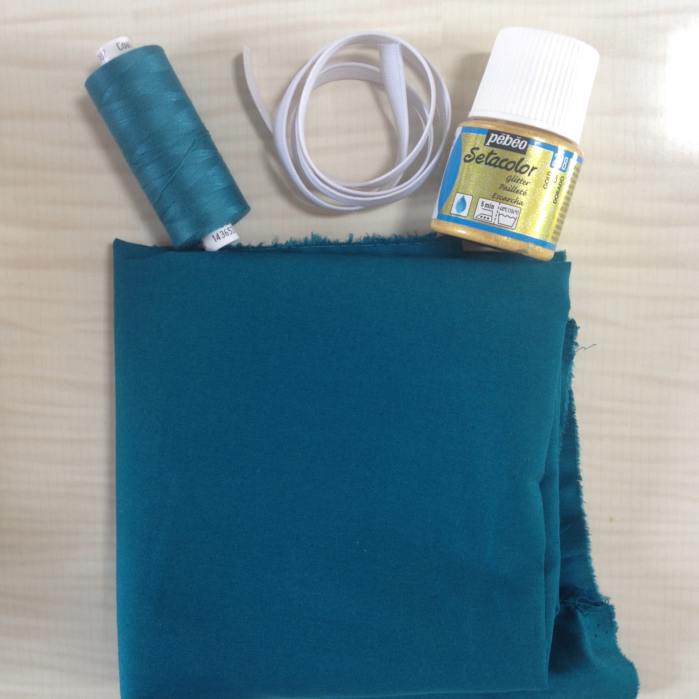 J’avais déjà le fil et l’élastique mais si vous devez en acheter, comptez environ 3€ pour une bobine de fil Gütermann et pas plus de 1€ pour l’élastique.