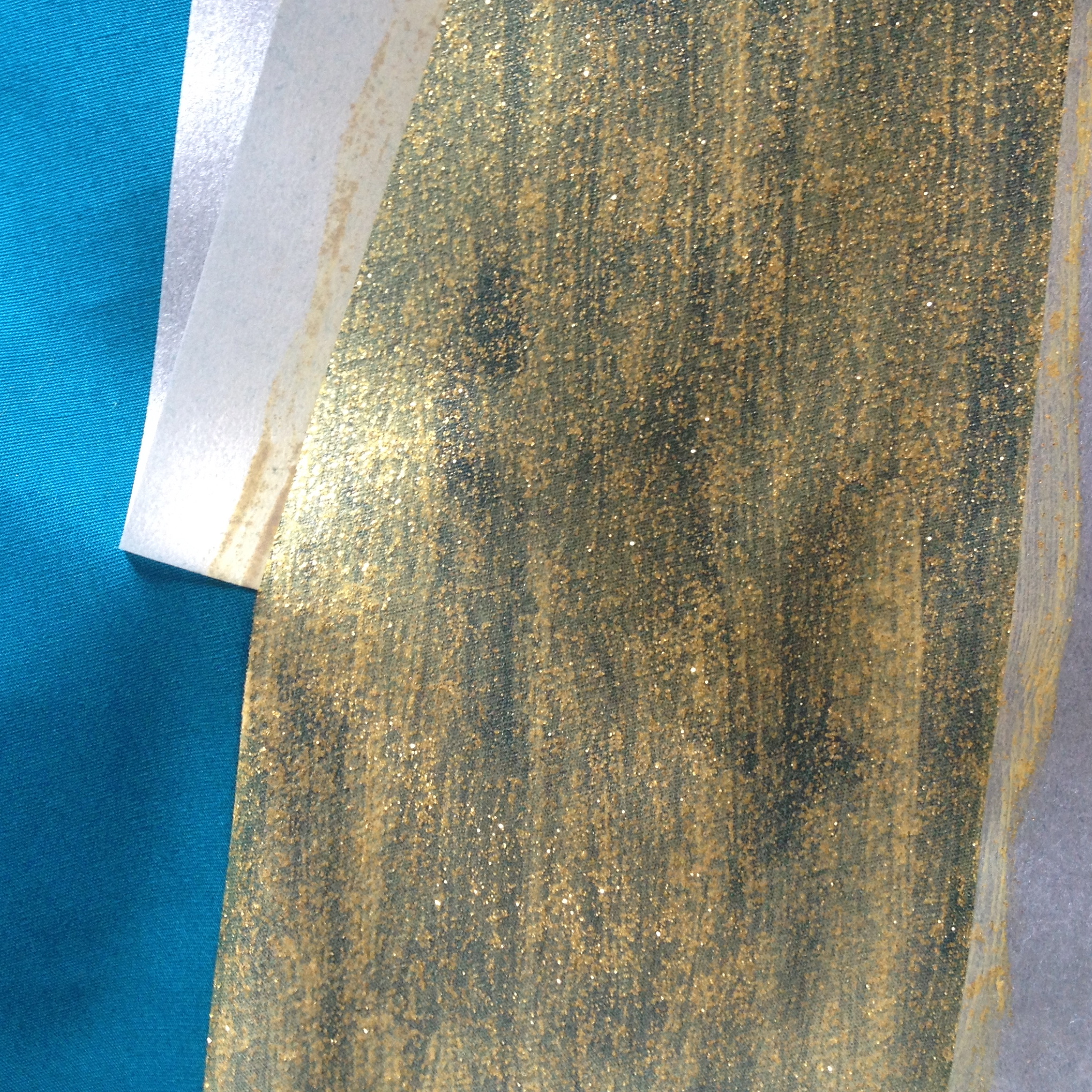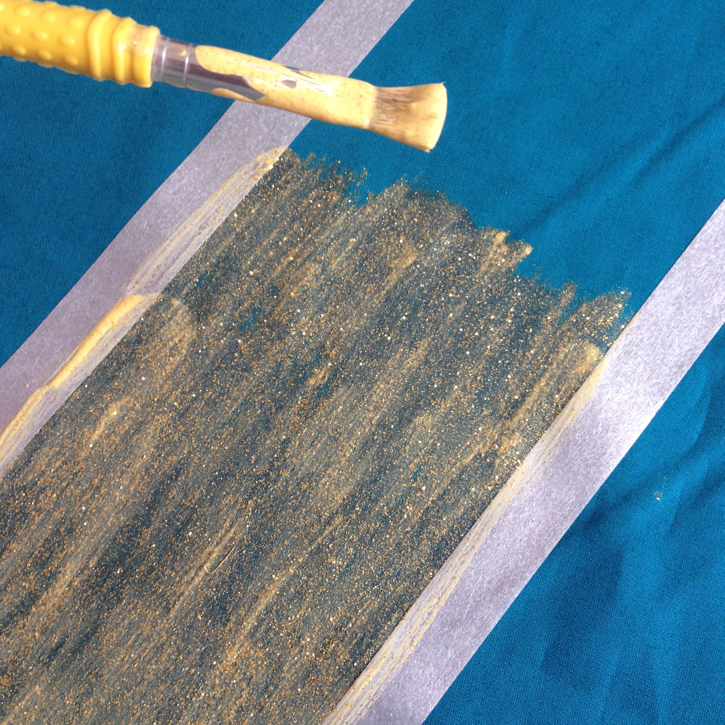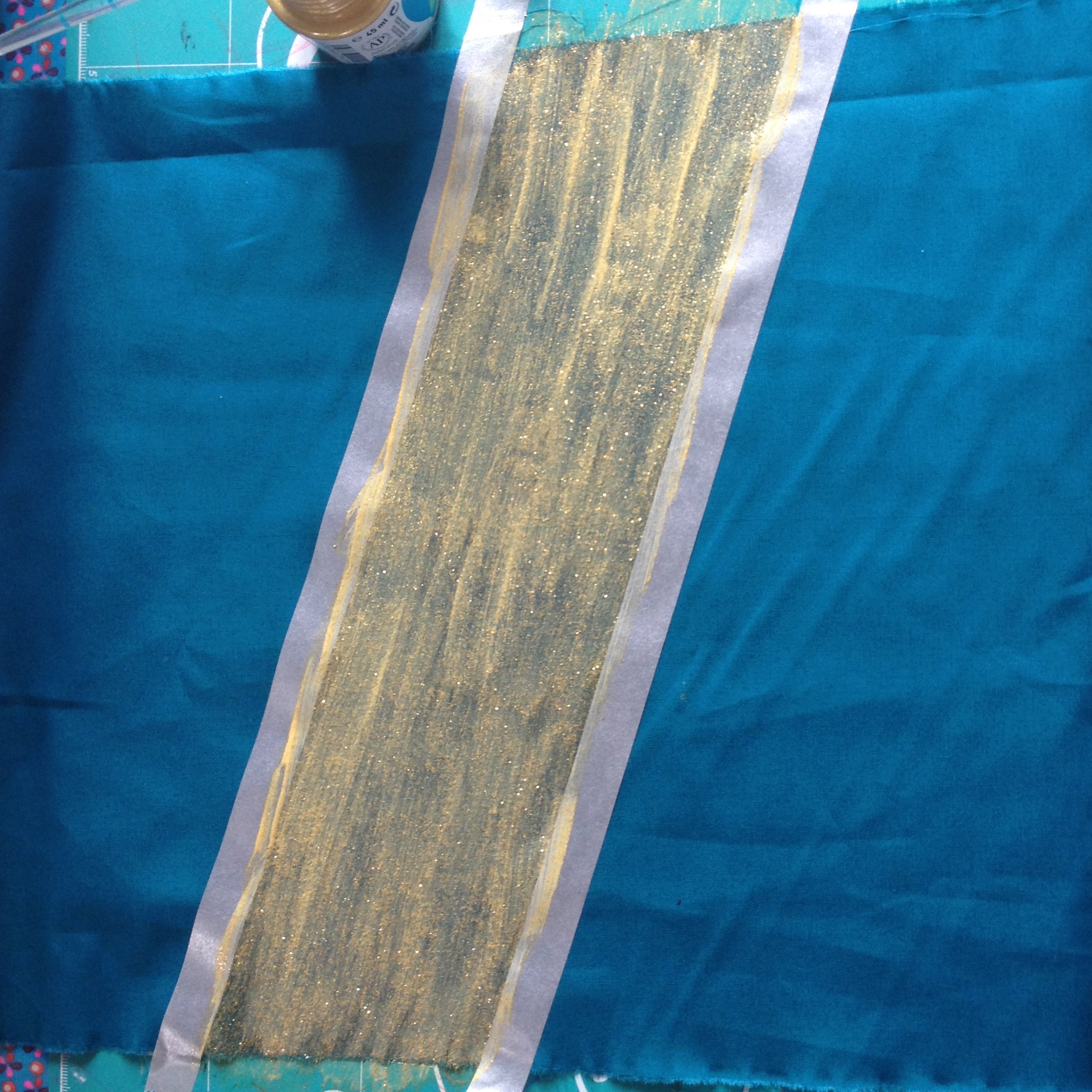 – De la peinture pour textile dorée. J’ai opté pour la peinture Setacolor pailleté or n°208 de Pébéo (à shopper notamment ici).