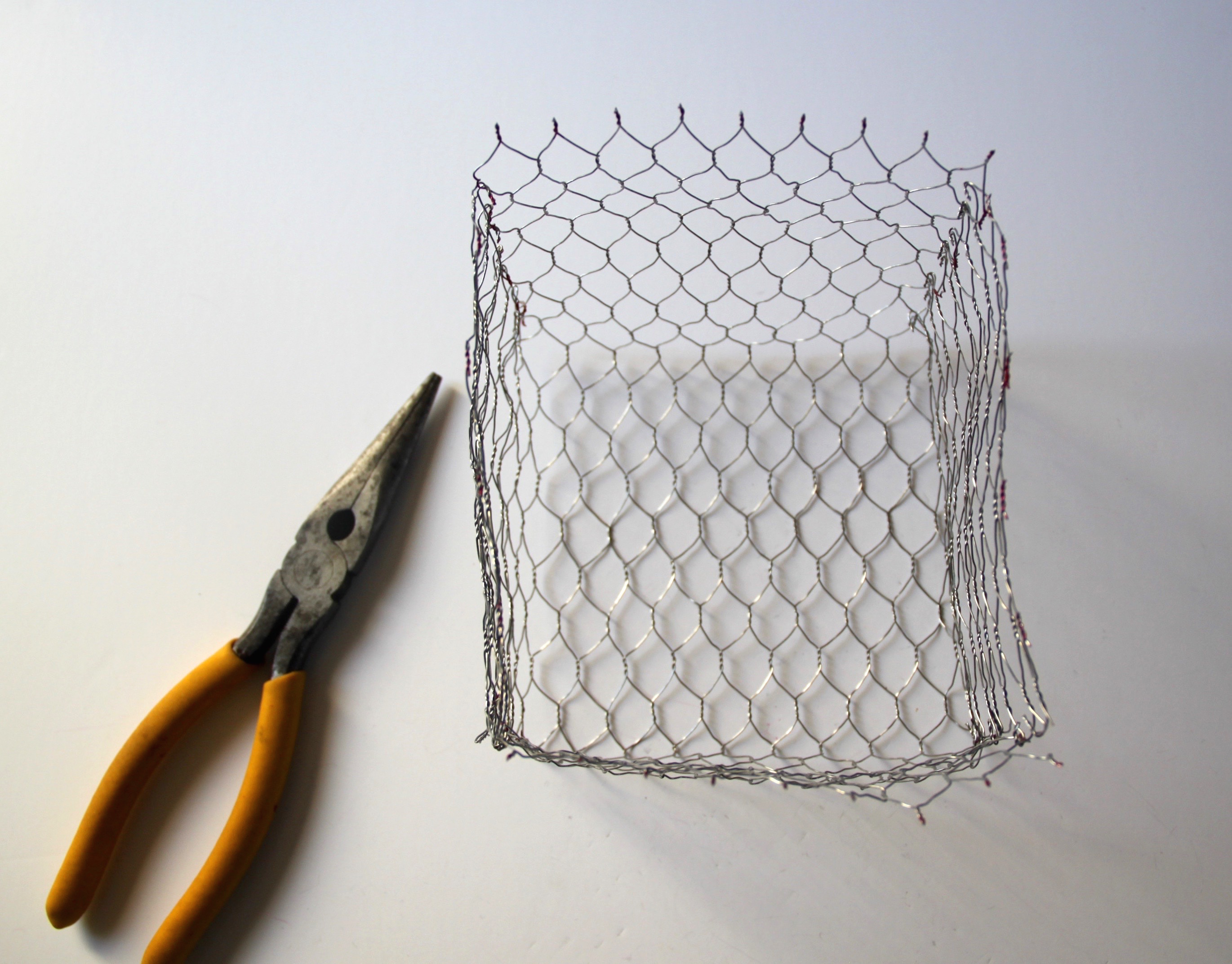 5. Fermeture : fermer les 4 côtés de la panière en rabatant les fils à l’aide d’une pince.