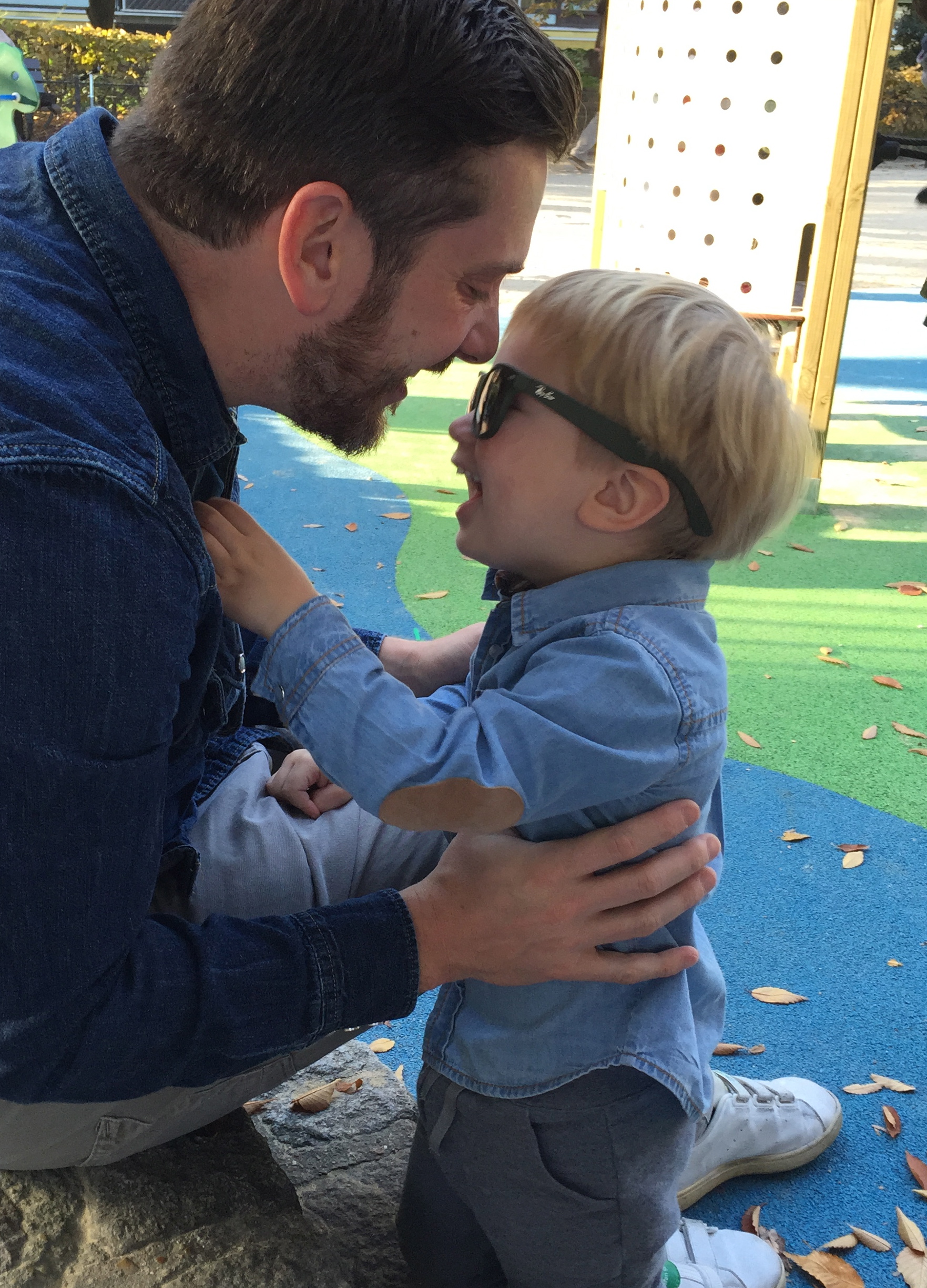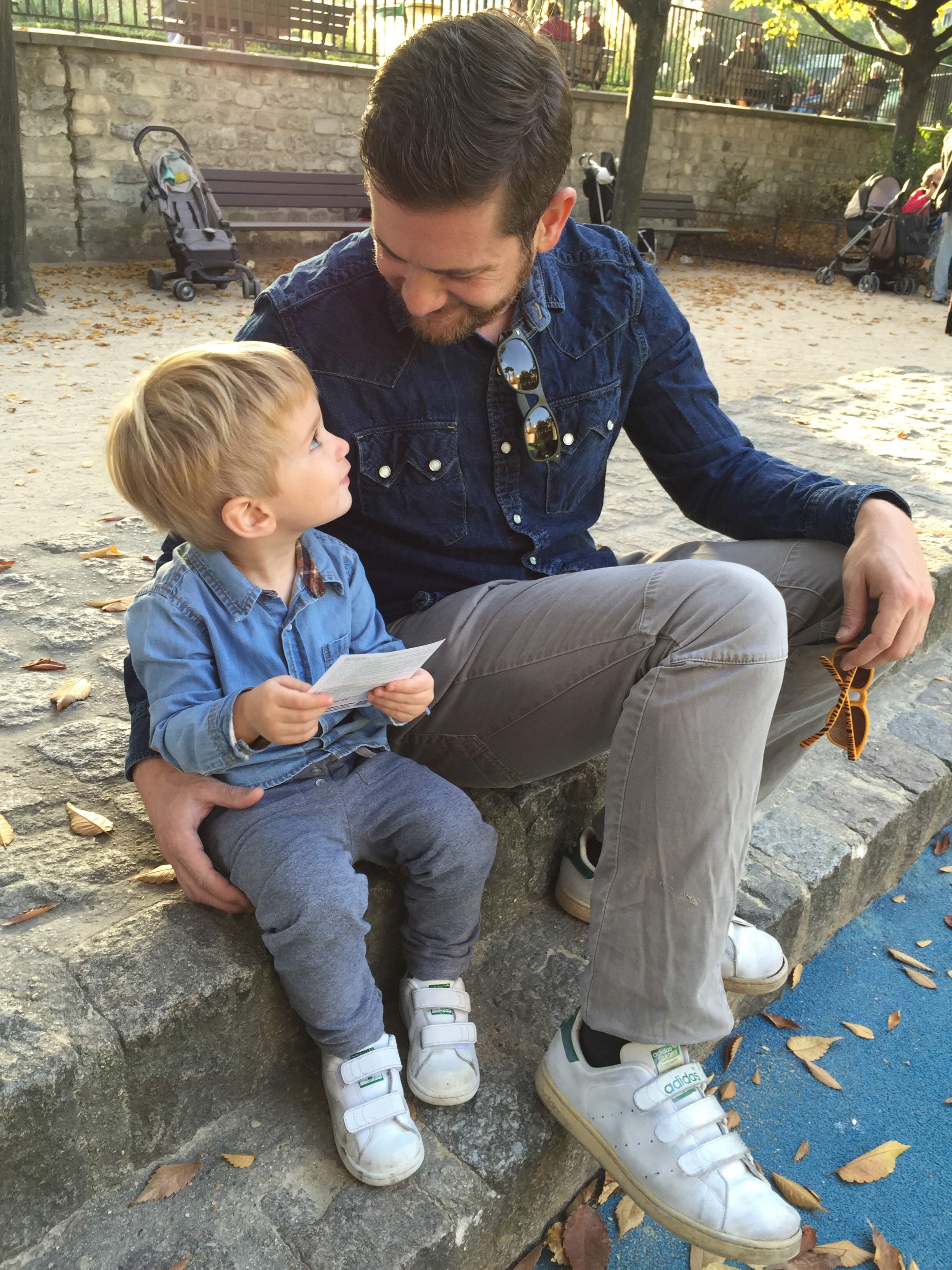J’aime quand mes deux hommes sont habillés un peu de la même façon, l’essentiel étant – comme pour un look mère / fille – que cela ne soit pas too much.