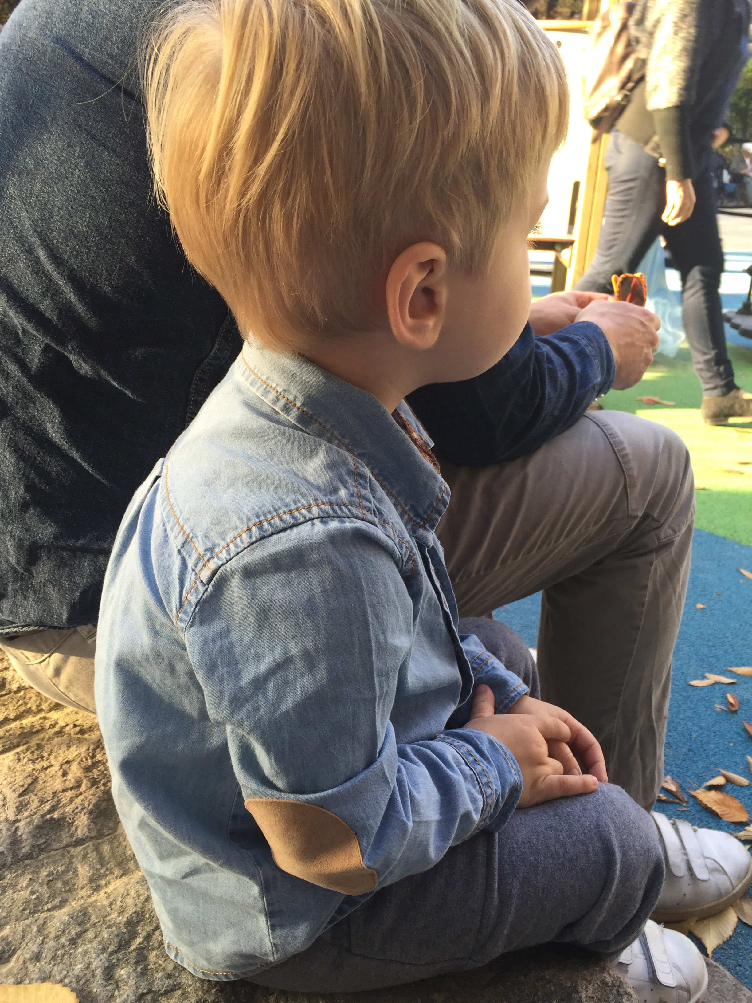 – Une chemise en jean* dont j’adore les détails (cols et coudières) et un jogger gris* Arsène et les Pipelettes,