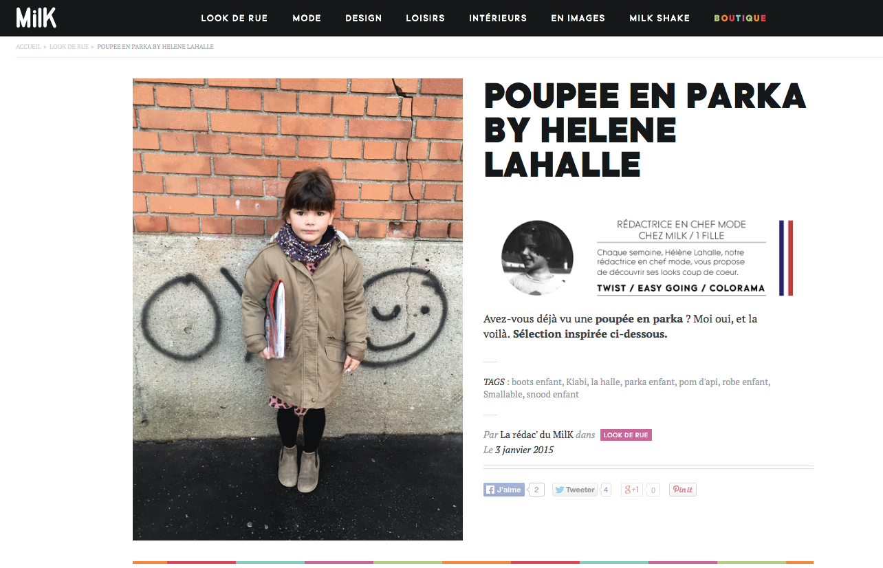 Quel plaisir et quelle fierté de voir ma Louise dans la rubrique « Look de rue » du Milk pour la 2ème fois (pour voir la première fois, c’est par-là).