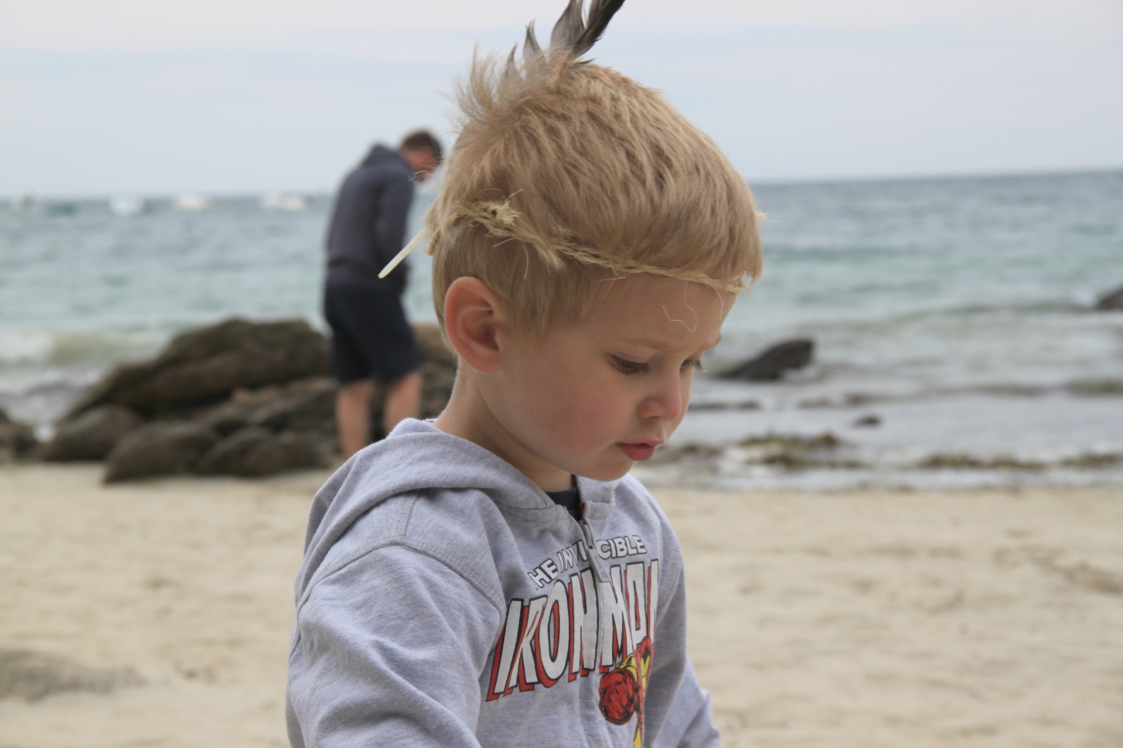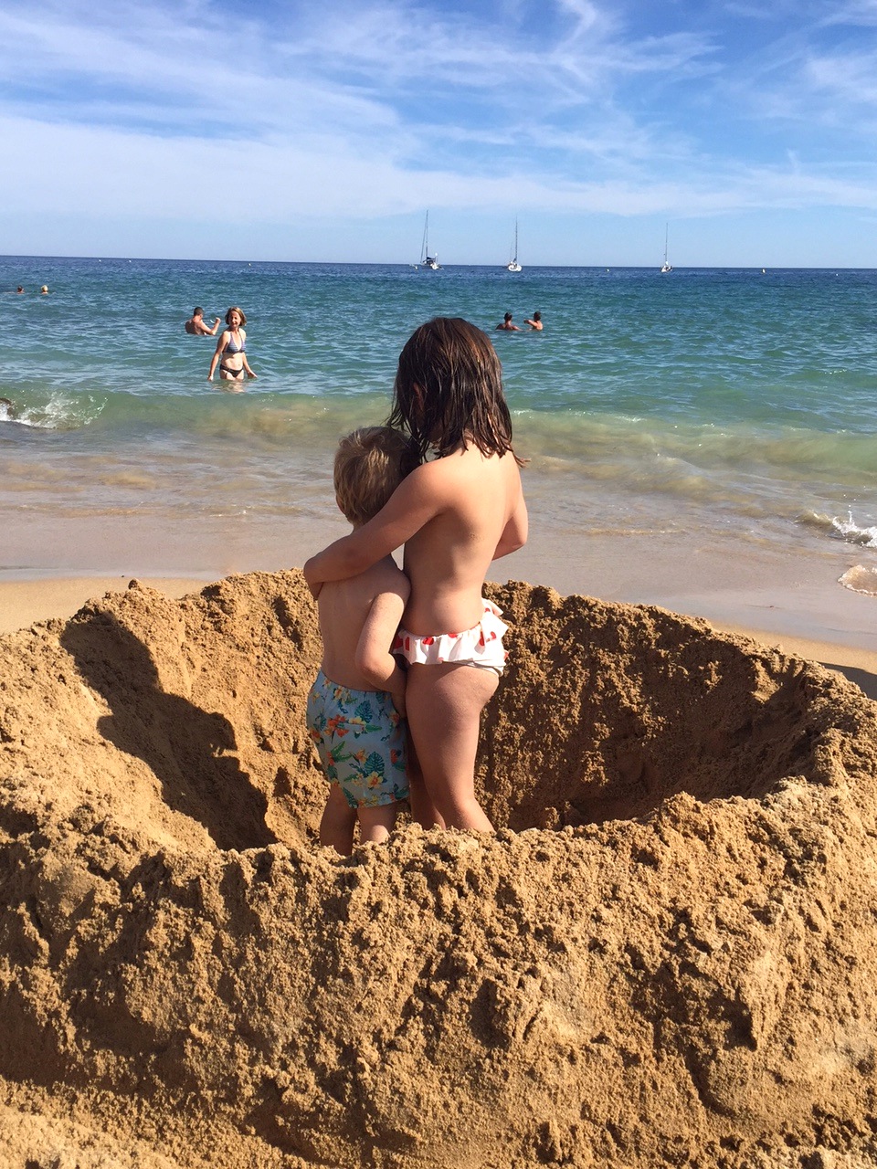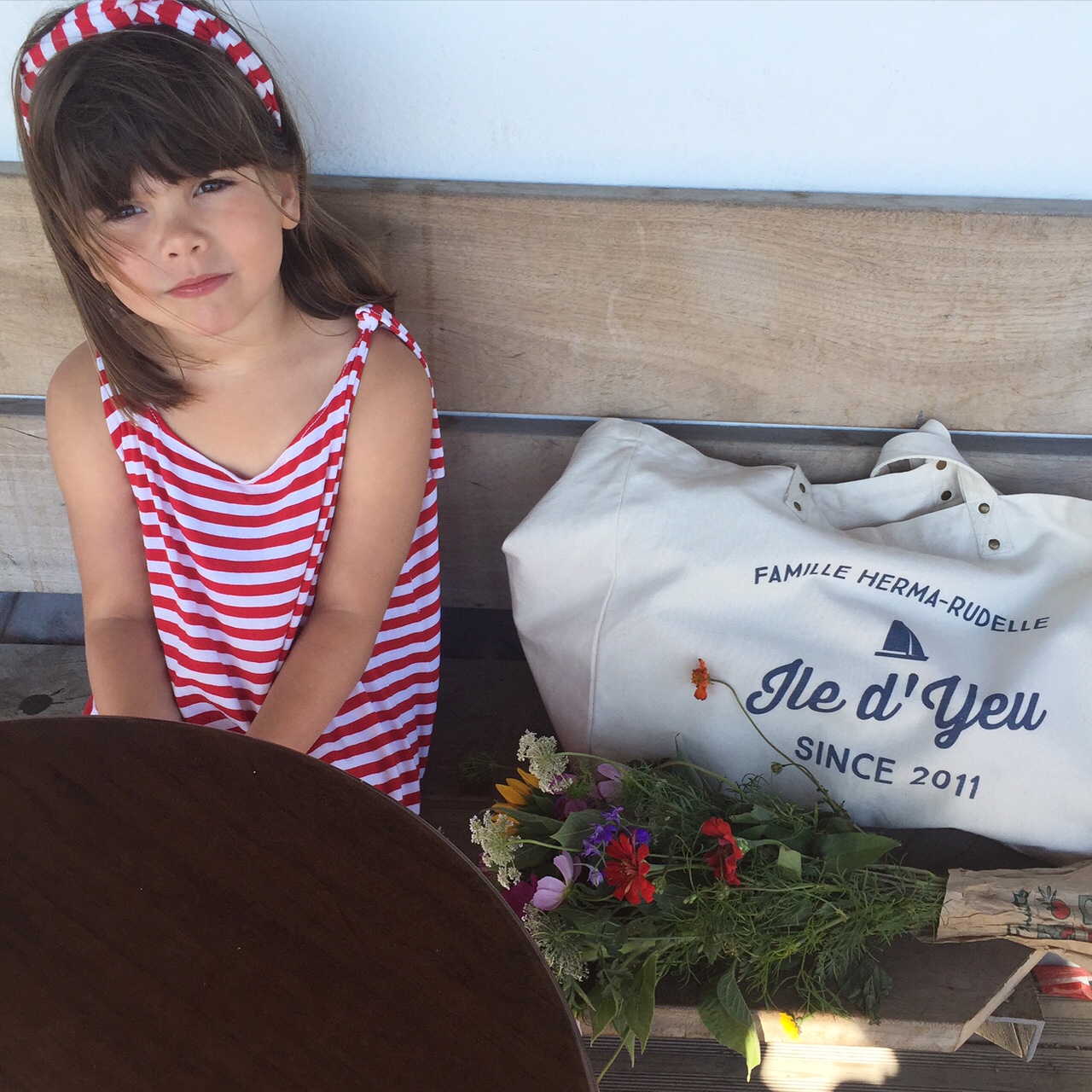 On vit dehors, les enfants s’amusent beaucoup, ils font des capes avec leurs foutas, ils ramassent des puces de sable (moi je déteste ça…mais c’est une autre histoire), on fait nos petites courses tous les matins en alternant Port Joinville et Saint Sauveur, on fait la sieste, on bouquine, on mange des glaces et des bichonnettes (spécialité de chez Tatie Bichon à l’Ile d’Yeu = des gaufres sur un baton façon barbe à papa)…bref, c’est la belle vie et on voudrait que ça ne se termine jamais. Et pour garder plein de souvenirs on fait des photos que l’on pourra regarder tout le long de l’année.
