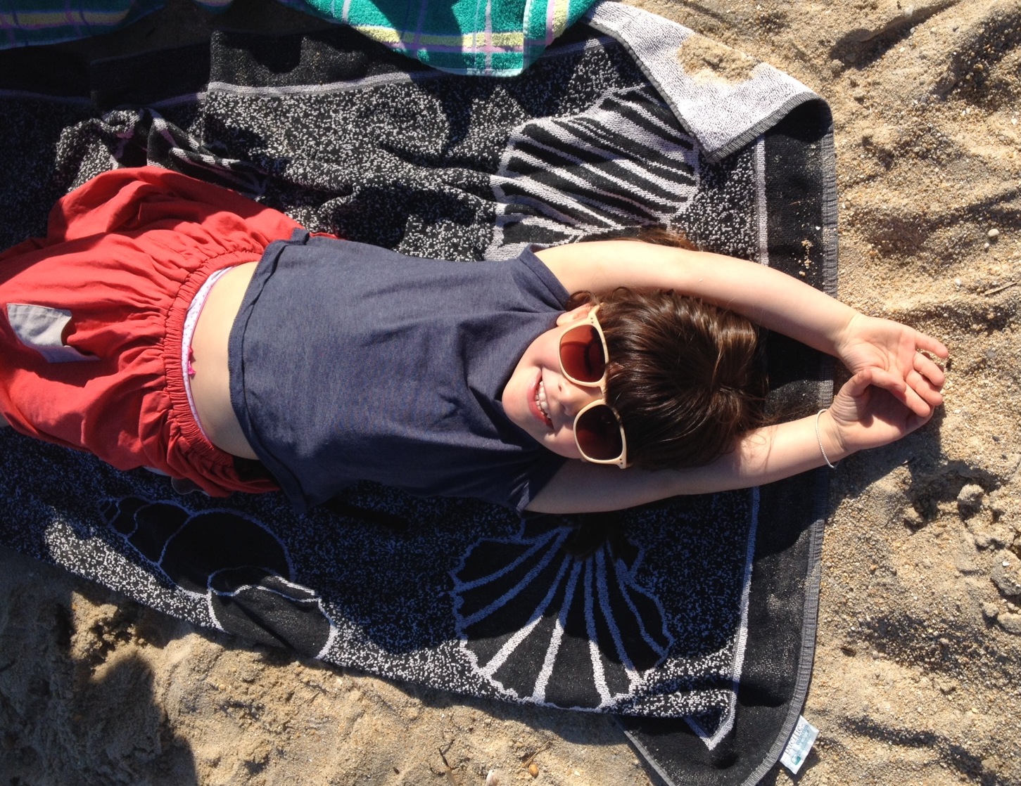 Ici (prêt de La Trinité sur Mer) il fait un temps de dingue alors on en profite : on déjeune dehors, on va à la plage…comme un avant-goût d’été.