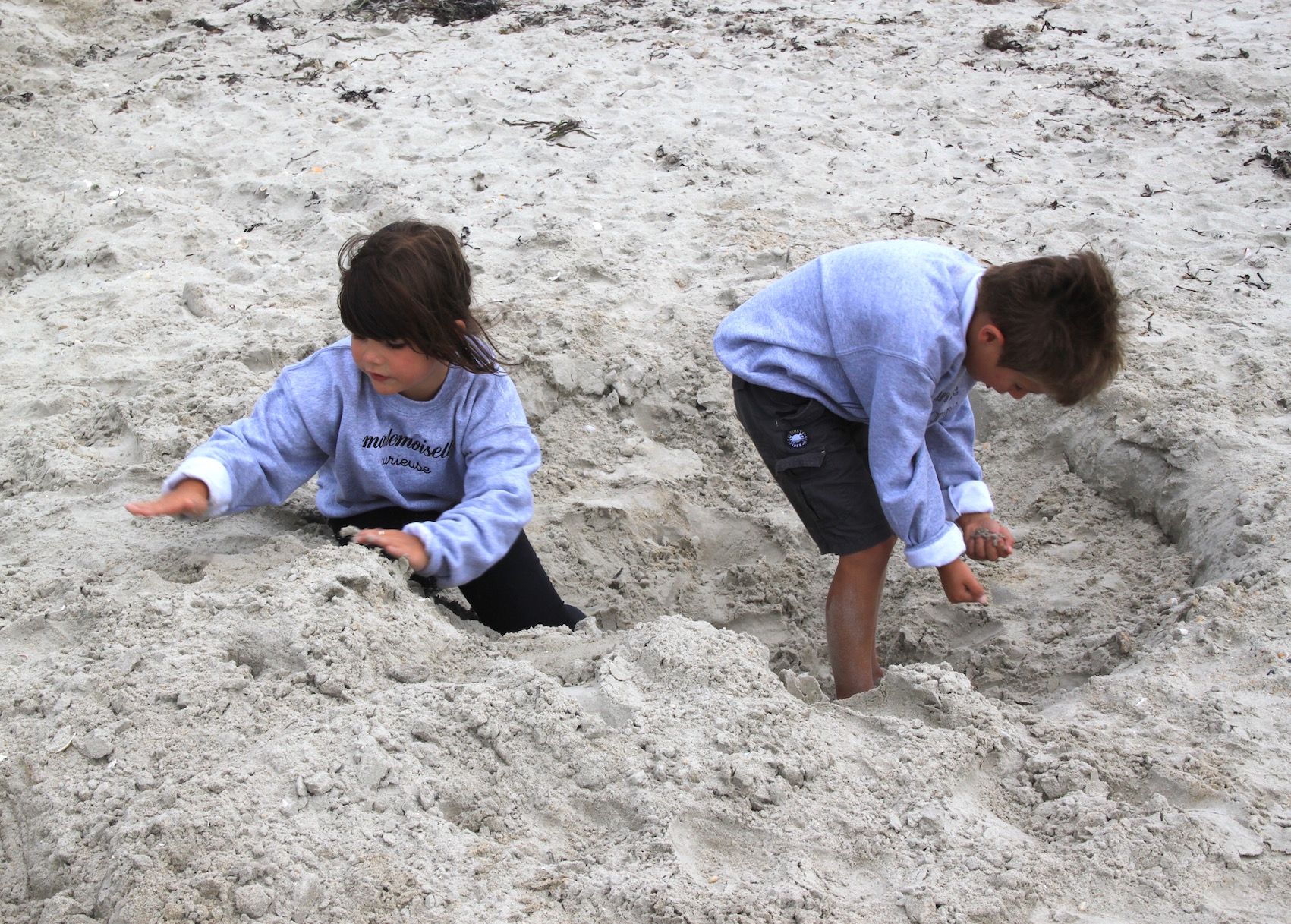 Hier sur la plage j’ai aimé les regarder. Parfois ils jouent chacun de leur côté et puis souvent ils se retrouvent et même si Louise n’avait pas très envie de prendre la pose et que les photos volées sont plus réussies, je trouve que leur complicité saute aux yeux sur la photos où ils se regardent.