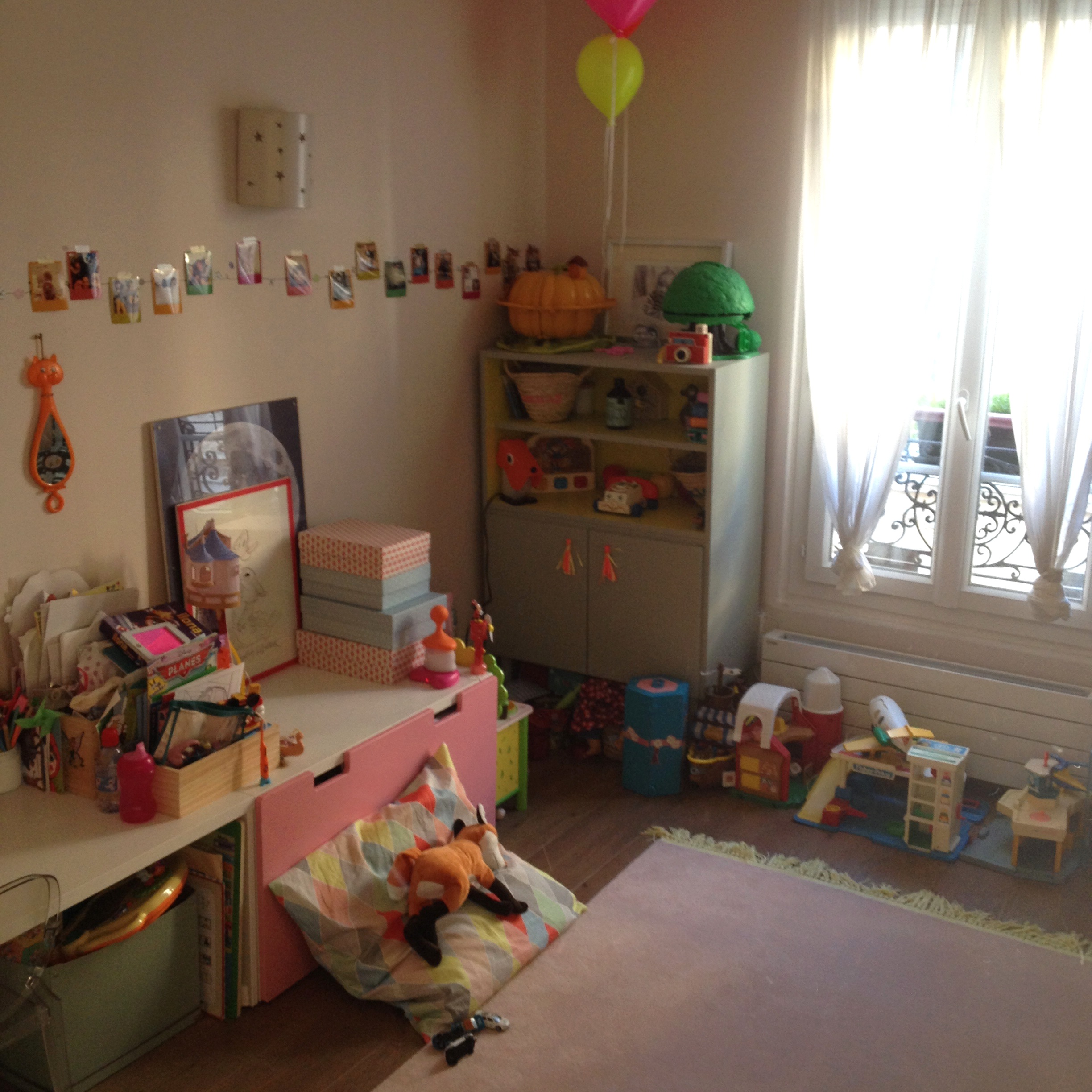 Leur chambre, vous la connaissez, je vous la montre régulièrement. Il y a le coin de Louise très fi-fille et celui de Lucien, plus simple. Et au milieu, leurs jouets, leurs affaires, l’armoire pour ranger leurs vêtements.