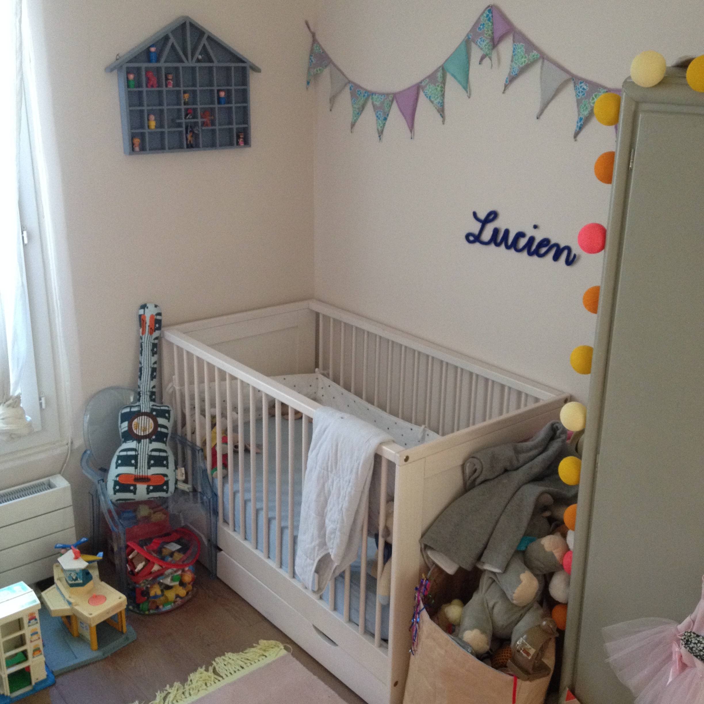 Quand Lucien passera dans un « lit de grand », je pense que nous opterons pour un lit superposé. Cela nous fera gagner (enfin j’espère!) un peu de place. Mais en attendant, j’optimise chaque mètre carré. Et si le tout est assez chargé, je suis plutôt contente du résultat.