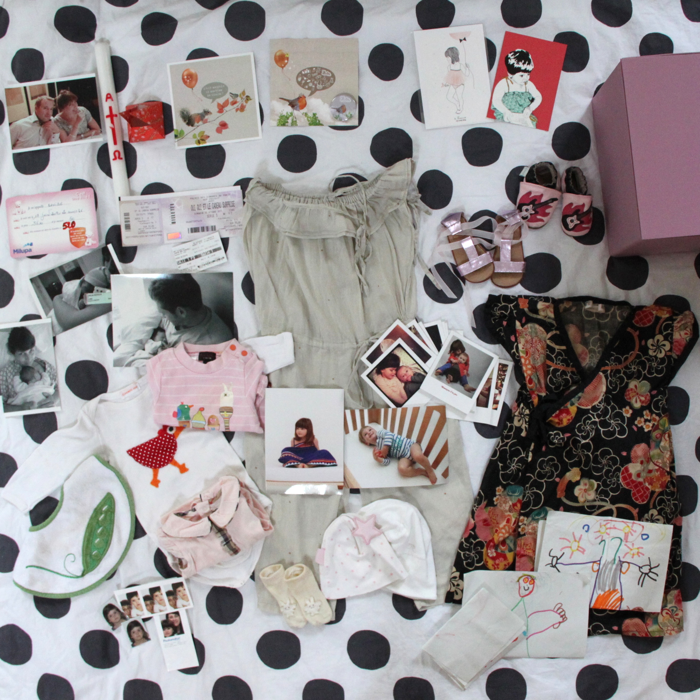 J’aime aller fouiller dedans de temps et temps et ce matin j’ai eu envie de tout sortir et de tout étaler. Un peu pour faire un petit bilan de ma vie de maman à quelques jours de son anniversaire.