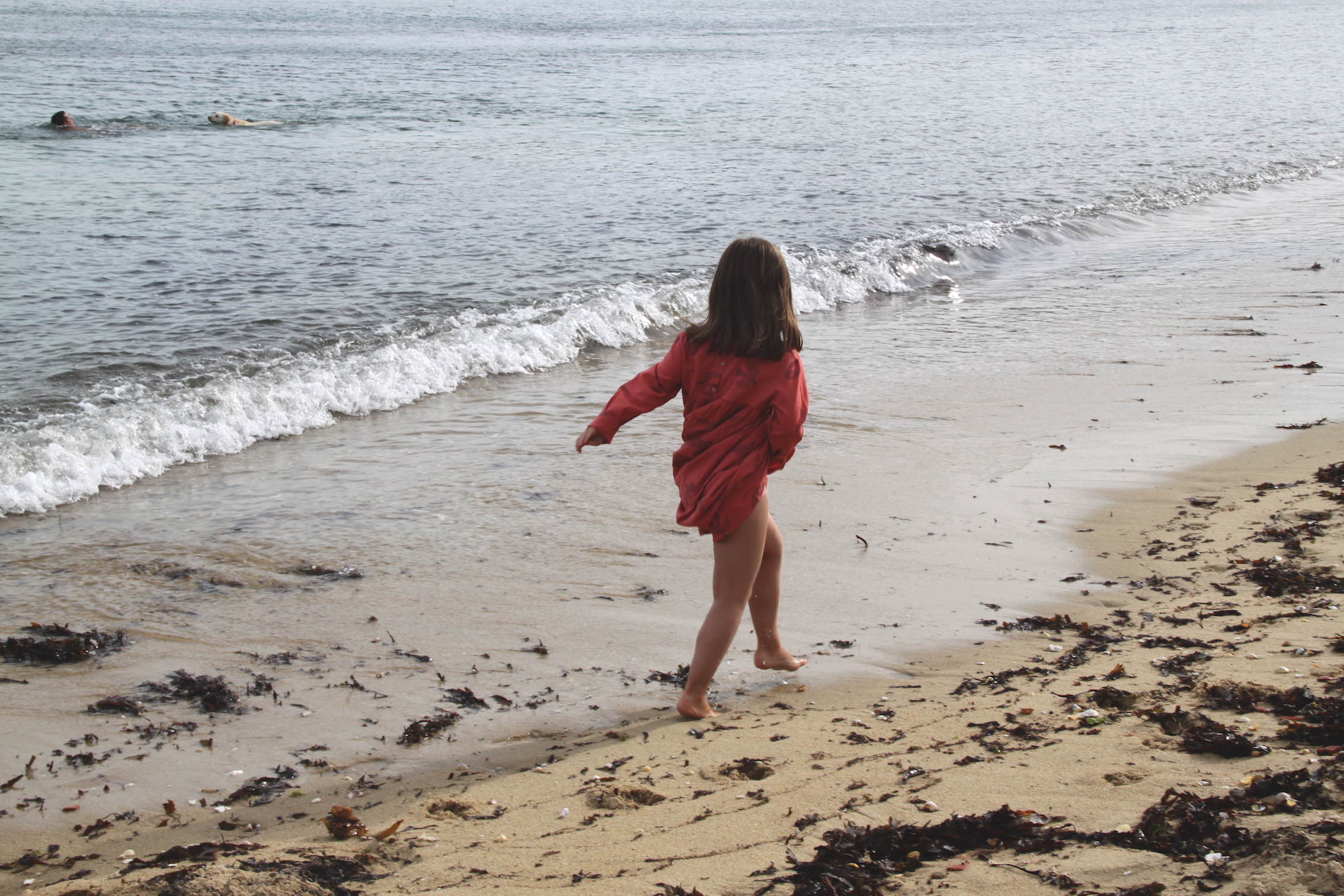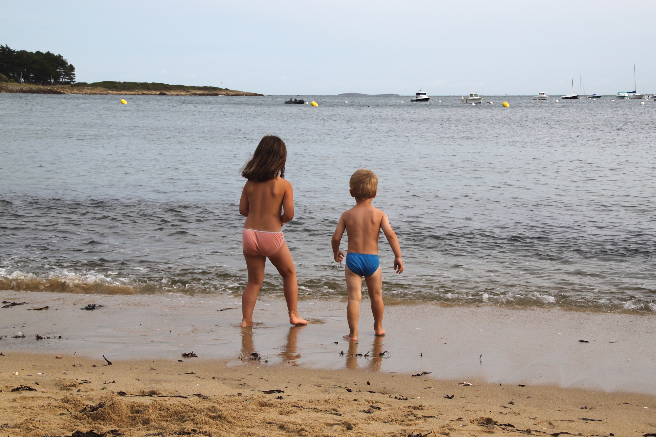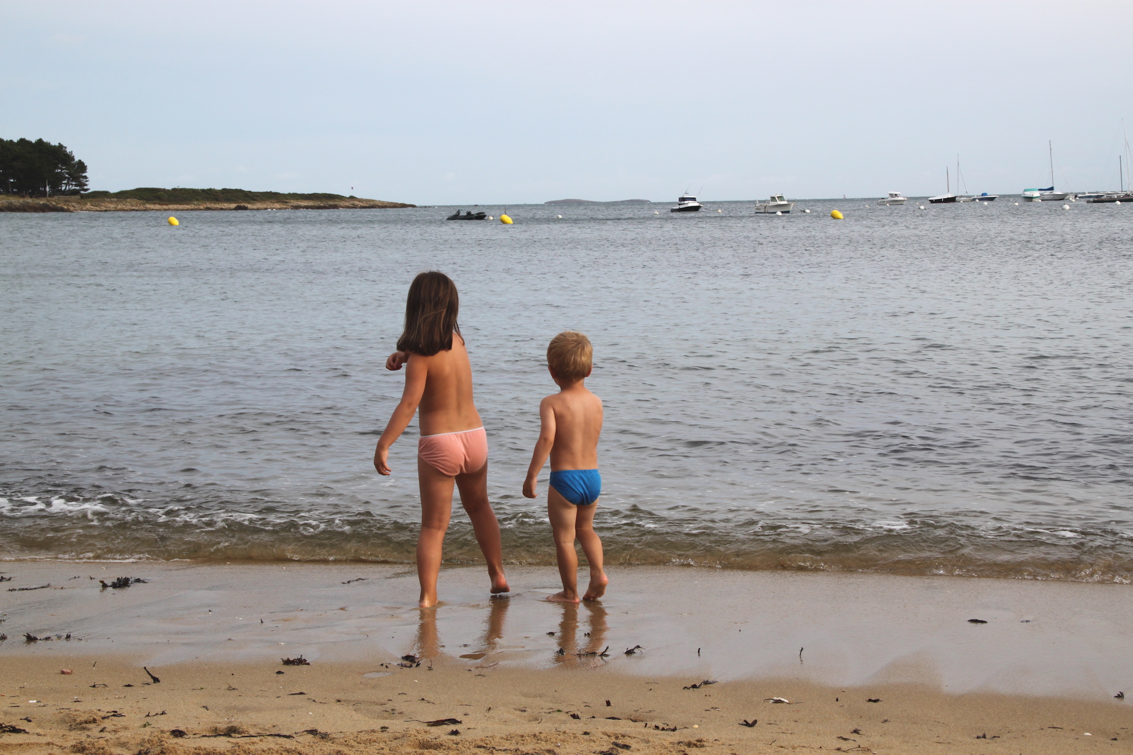 Nous avons ensuite filé à la plage malgré un temps un peu nuageux. Comme nous n’avions pas pris leurs maillots de bain, les enfants ont fini en sous-vêtements à ramasser des coquillages et des cailloux plats pour faire des ricochets.