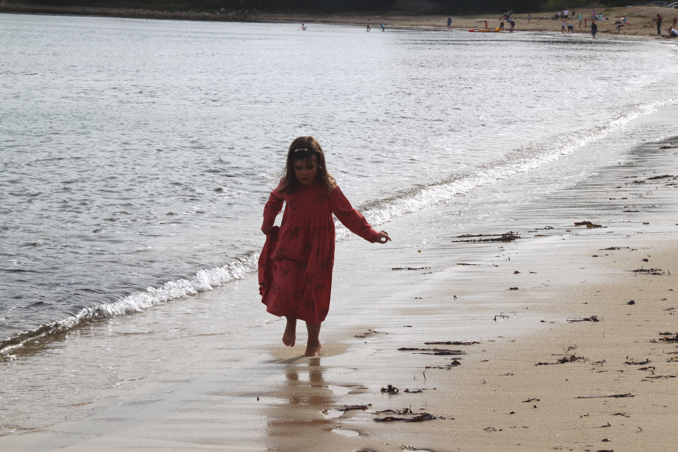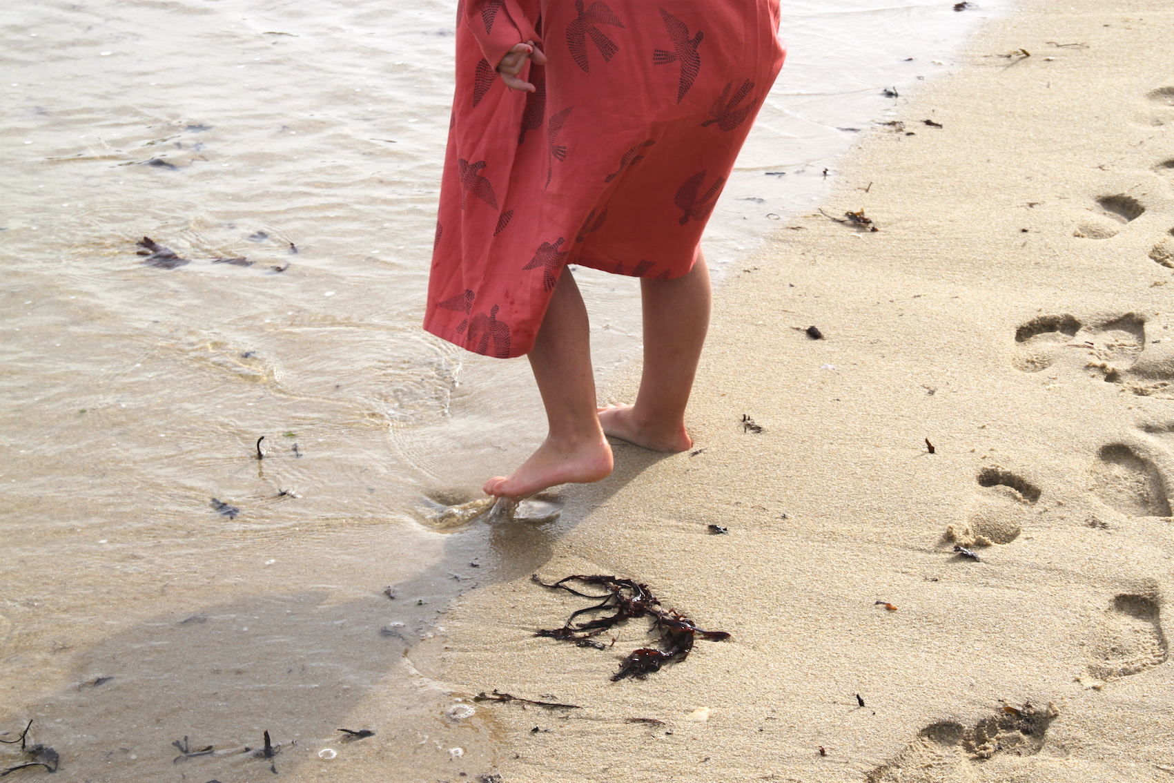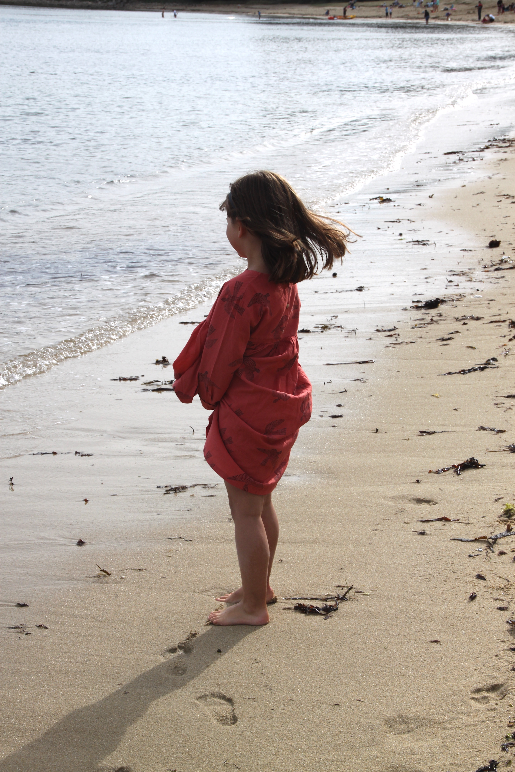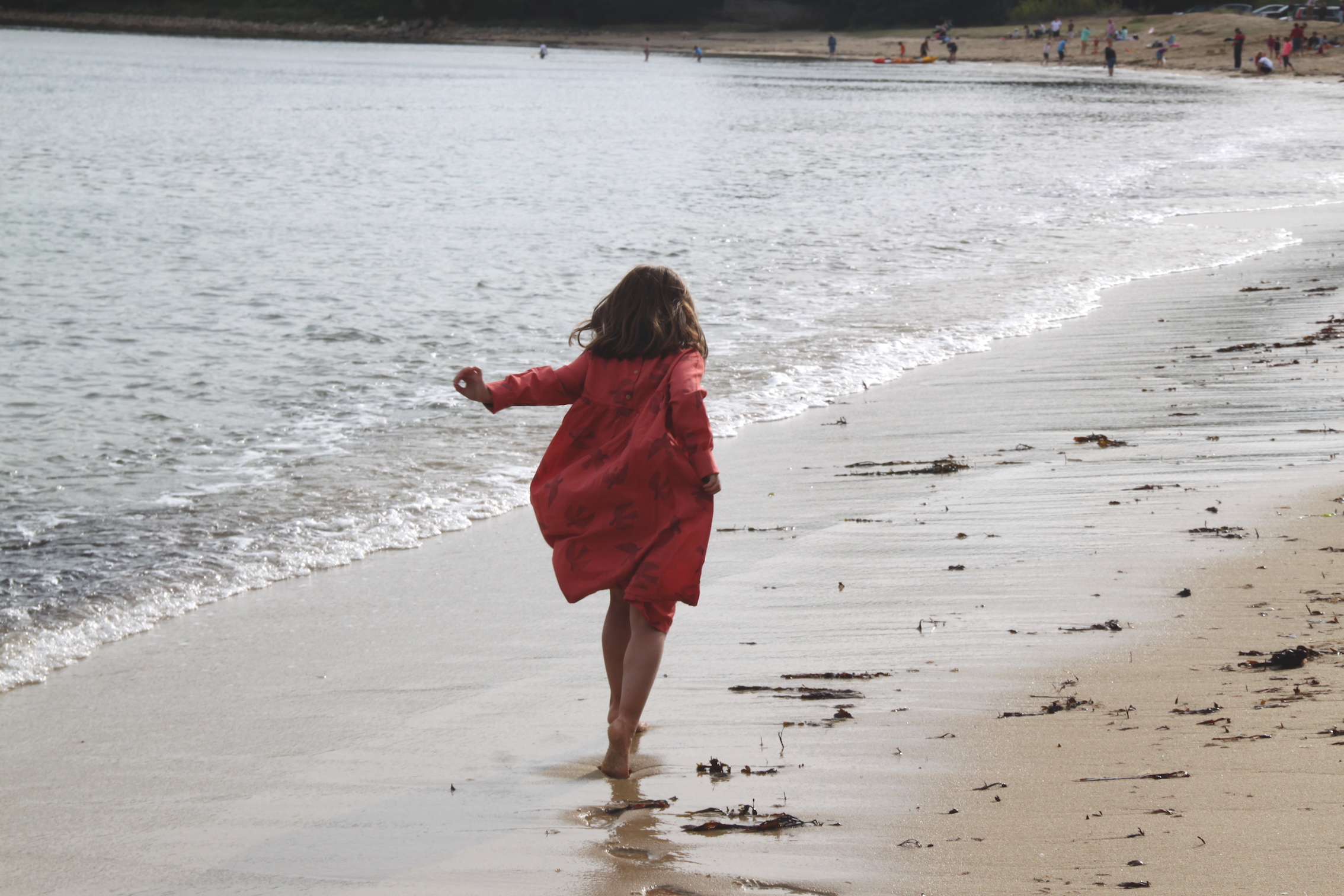 Nous avons ensuite filé à la plage malgré un temps un peu nuageux. Comme nous n’avions pas pris leurs maillots de bain, les enfants ont fini en sous-vêtements à ramasser des coquillages et des cailloux plats pour faire des ricochets.