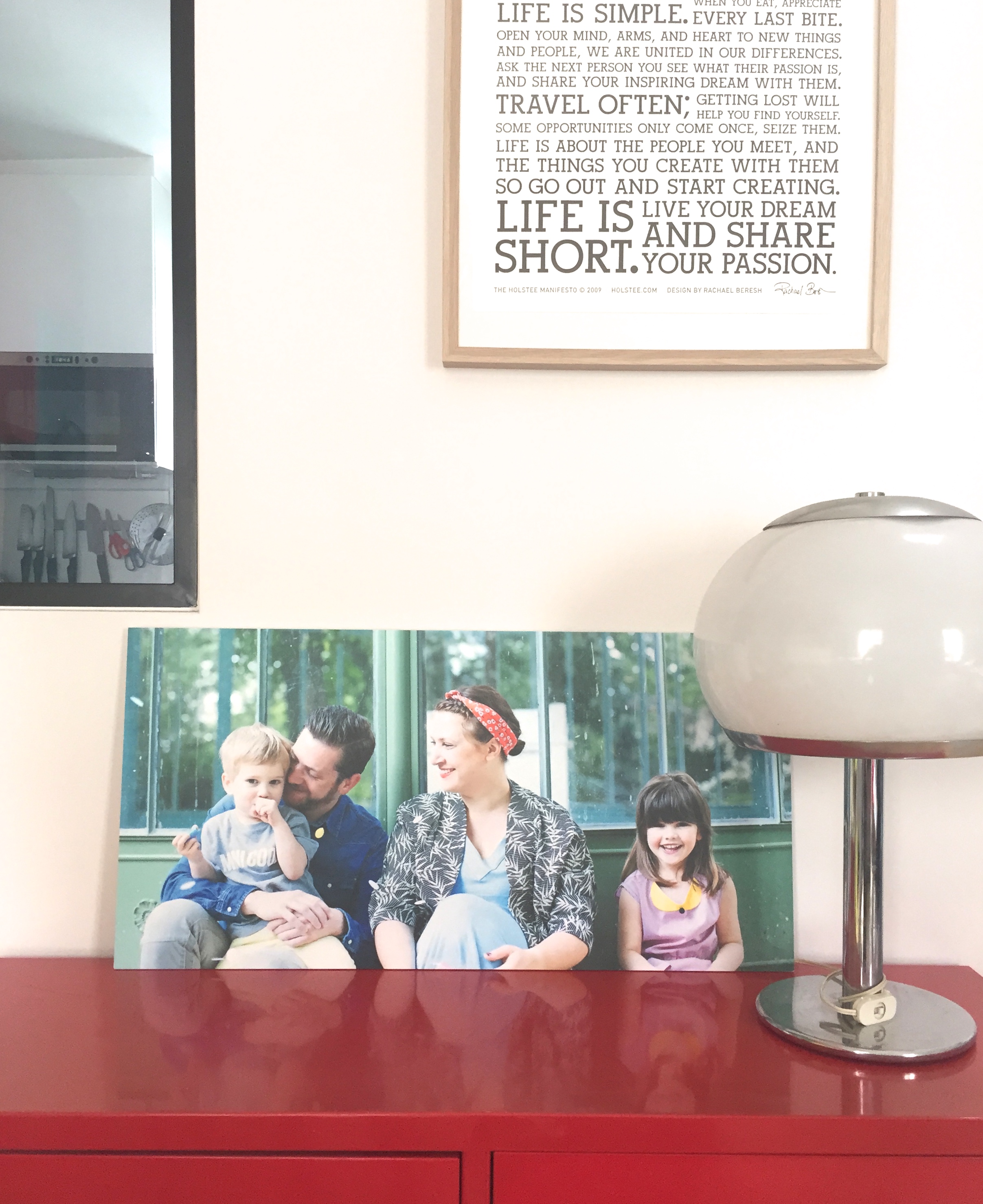 Pour l’instant la grande photo de NOUS est posée sur notre meuble rouge. Je réfléchis encore à l’endroit parfait pour la fixer.