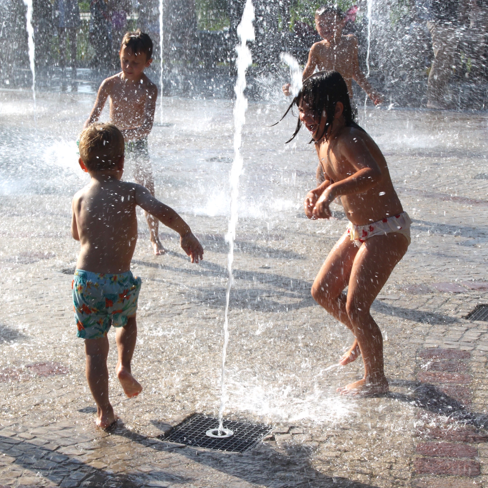Des jets d’eau juste a coté de chez nous, c’est super.