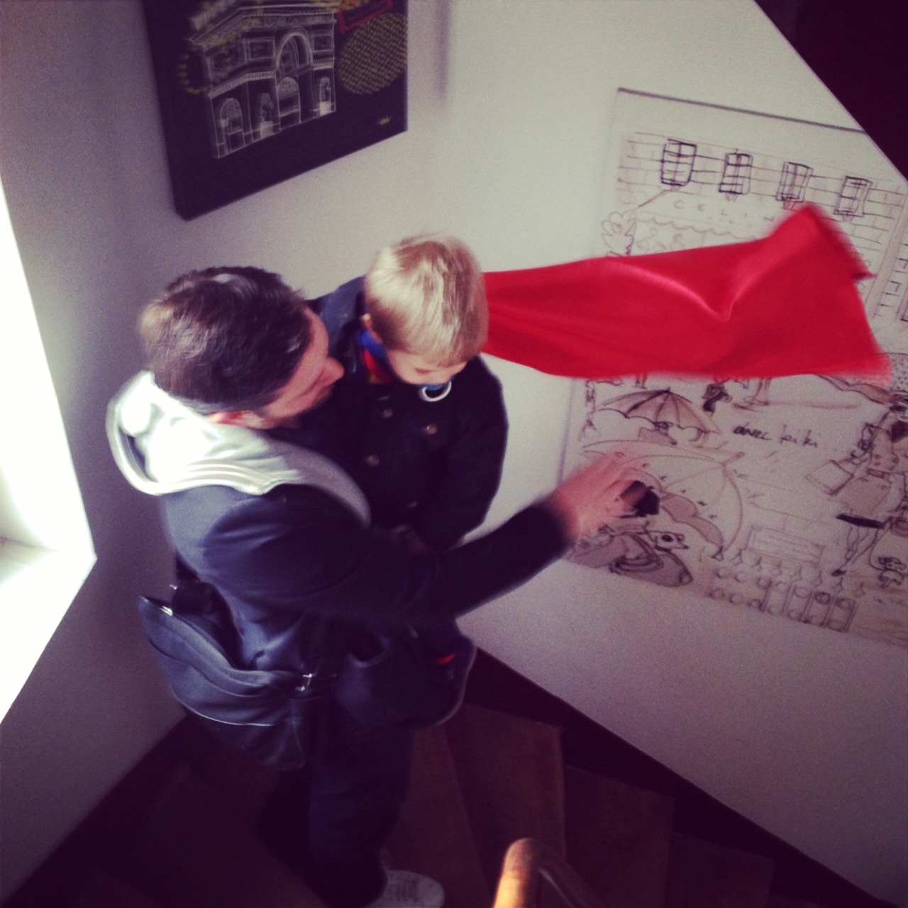 – J’ai choisi de ne pas coudre la cape directement sur le t-shirt pour pouvoir l’enlever plus facilement (et puis parce que je n’étais pas sûre que mon fils veuille bien la mettre!). J’ai donc cousu des pressions.