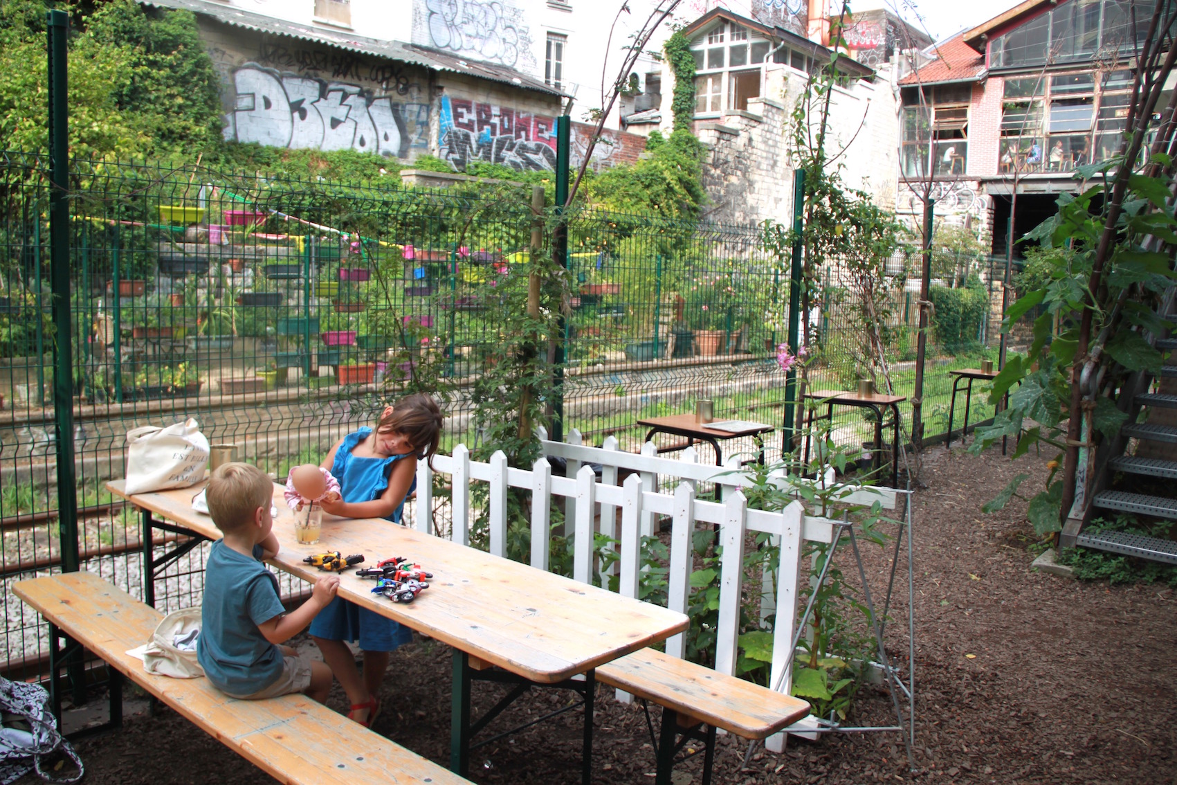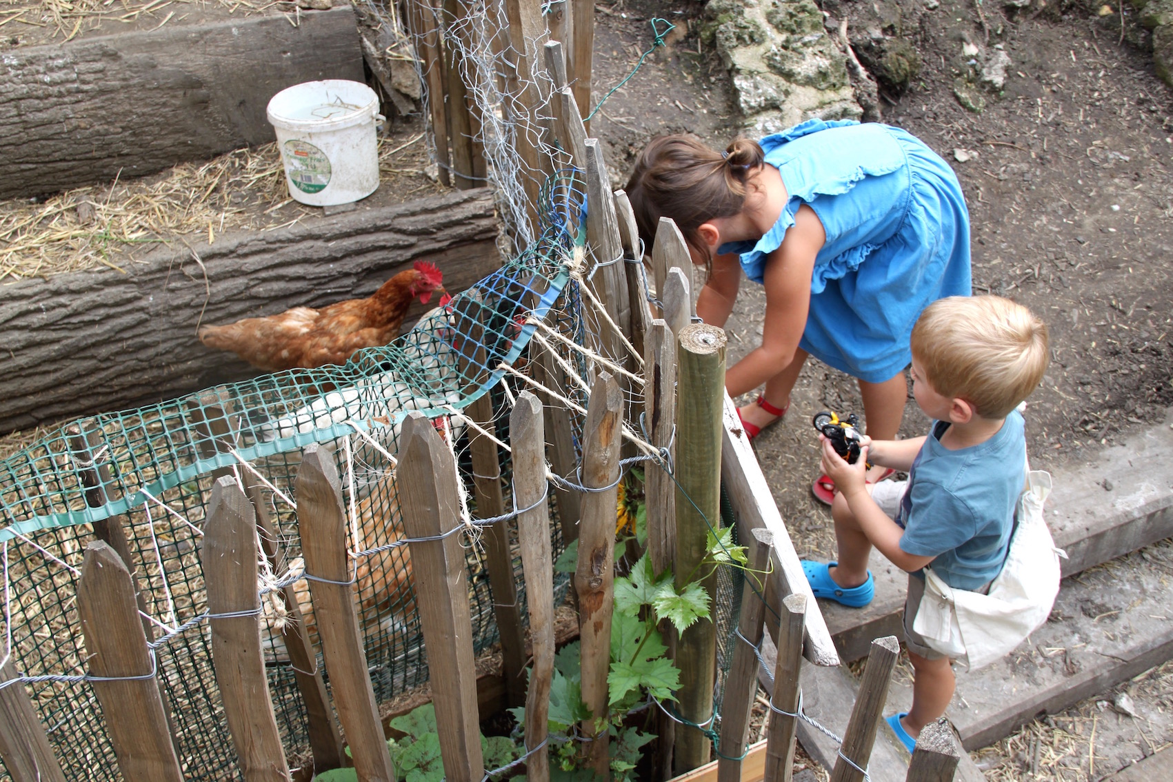 Après son réveil, comme il ne pleuvait toujours pas (la météo a eu le bon goût de se tromper et je la remercie chaleureusement), j’ai préparé le goûter et nous sommes partis le prendre à la REcyclerie. Comme c’est à 5 minutes à pied de chez nous, c’est super pratique et les enfants étaient ravis d’aller voir les poules.