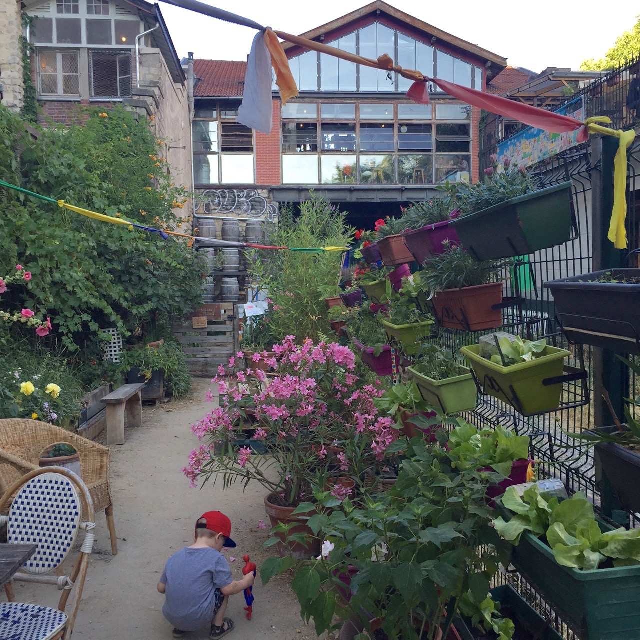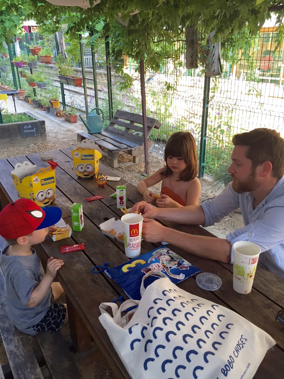 Après un tour au parc pour faire courir les fauves, nous n’avions pas du tout envie de rentrer alors nous sommes allées acheter des Happy Meals et nous avons filé au Jardin du Ruisseau qui se trouve de l’autre côté des rails au niveau de la REcyclerie.